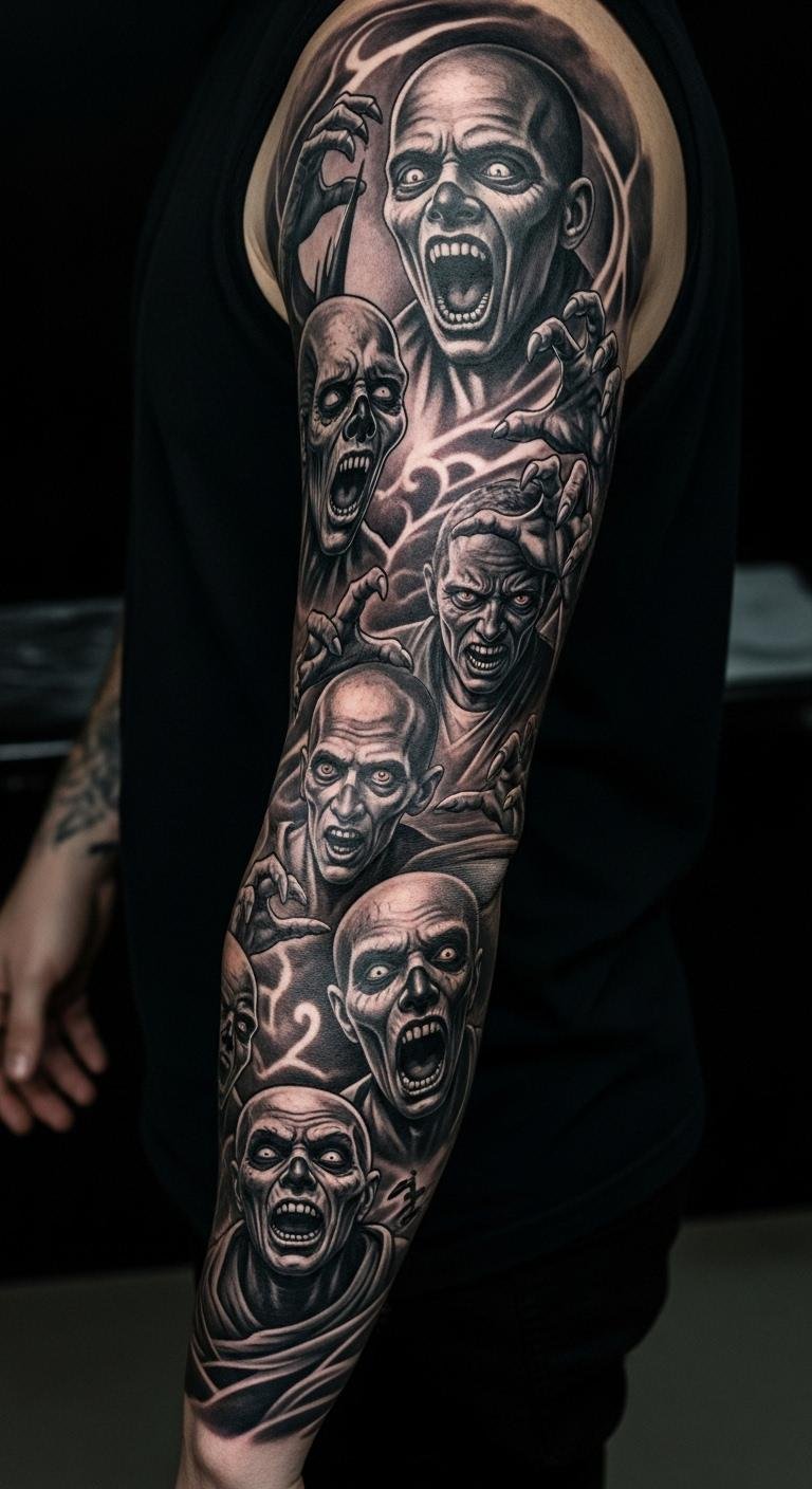 Horror sleeves scare with monsters. Skulls and creatures thrill. Draw movie scenes to plan. This saves.