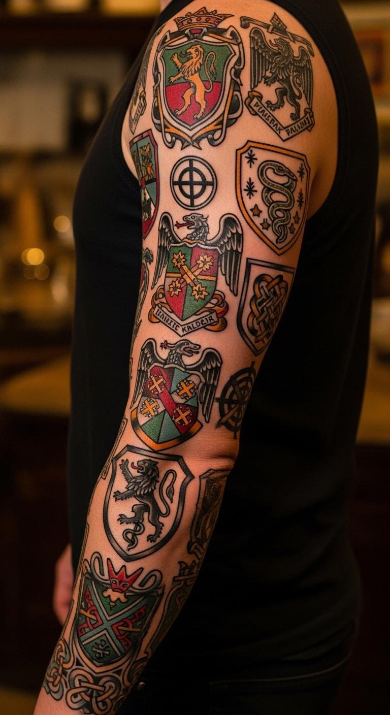 Crest sleeves honor family. Symbols and shields unite. Research your crest to begin. It’s cost-effective.