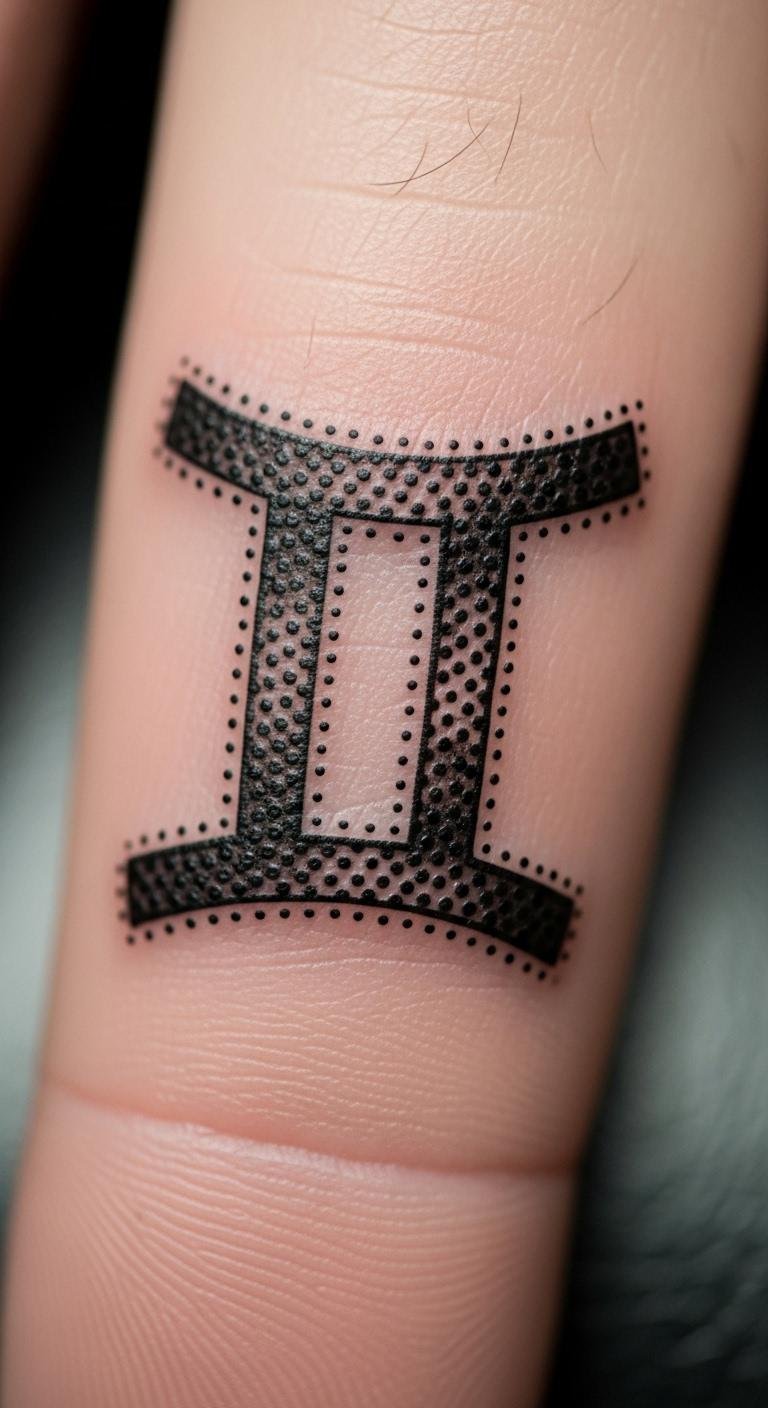Dotwork shades the glyph with dots. It’s detailed and unique. This Gemini tattoo is artistic. Place it on your finger. Budget tip: Look for dotwork specialists with deals. Around $55. DIY example: Dot a glyph on paper. Use a fine tip. Build up slowly. Take it to a pro. This style adds texture. It’s affordable and cool. Perfect for intricate fans.