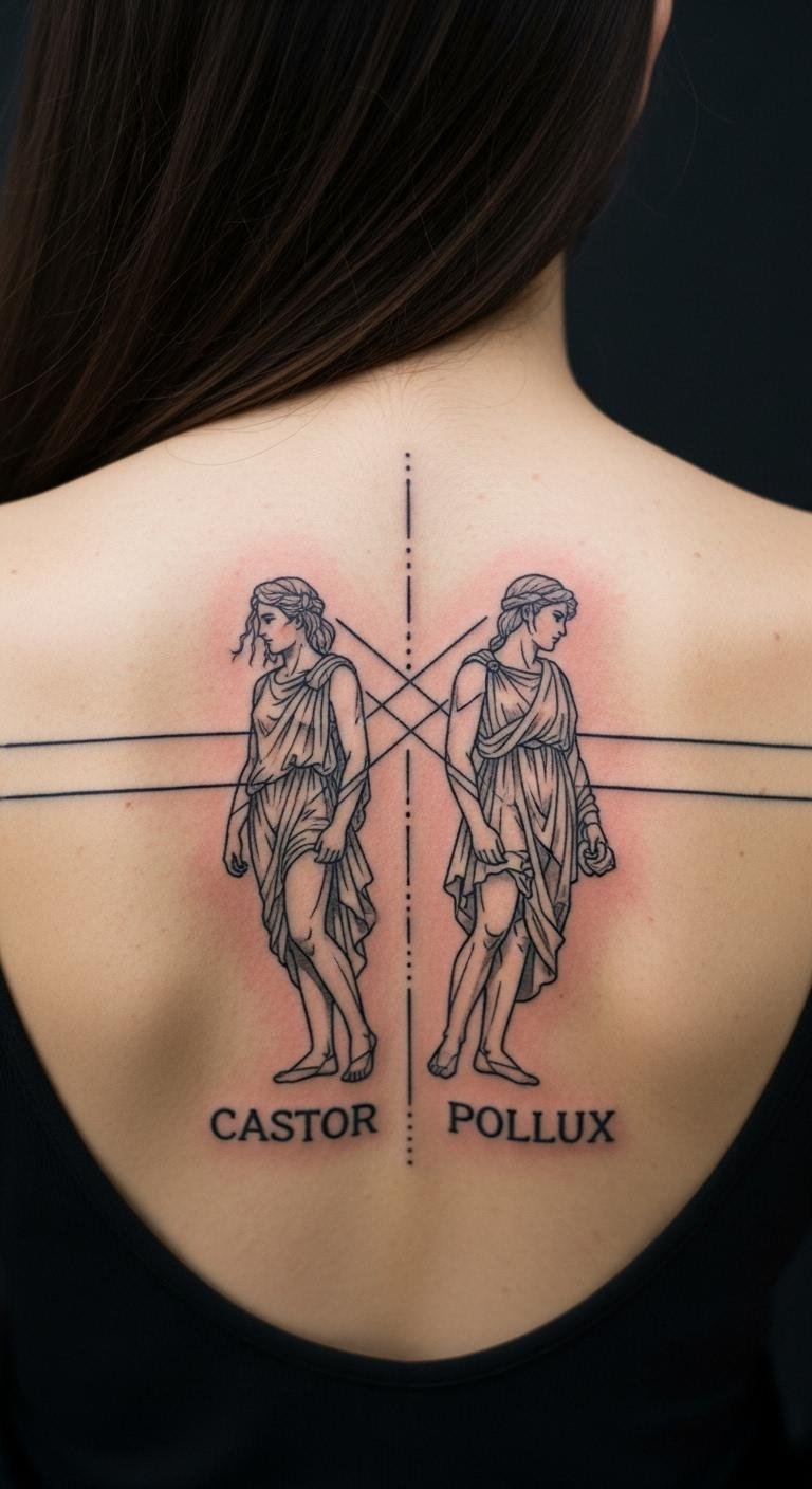 Castor and Pollux tell the Gemini myth. It’s about brotherhood. This design is narrative. Place it on your back. Budget tip: Find story-based artists at fairs. Around $95. DIY example: Draw the twins from myths. Use basic figures. Practice on large paper. Bring your idea in. This tattoo adds emotion. It’s a great personal choice.