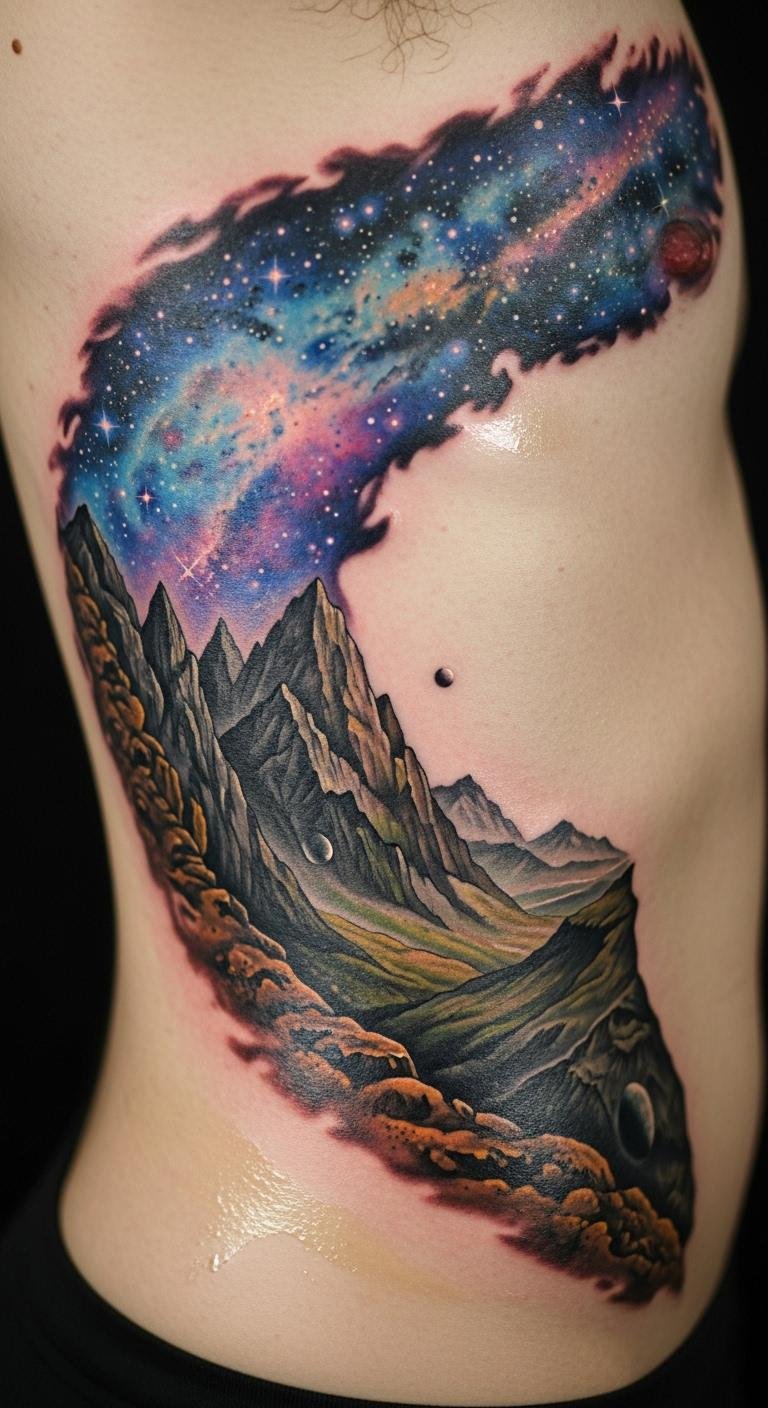 Fuse cosmic stars with earth elements. It shows Gemini’s complexity. This tattoo blends worlds. Try your side rib. Budget tip: Combine elements to share costs. $85. DIY example: Sketch stars with earthly shapes. Mix on paper. Use pencils. Show to an artist. This design is creative. It’s ideal for dreamers.