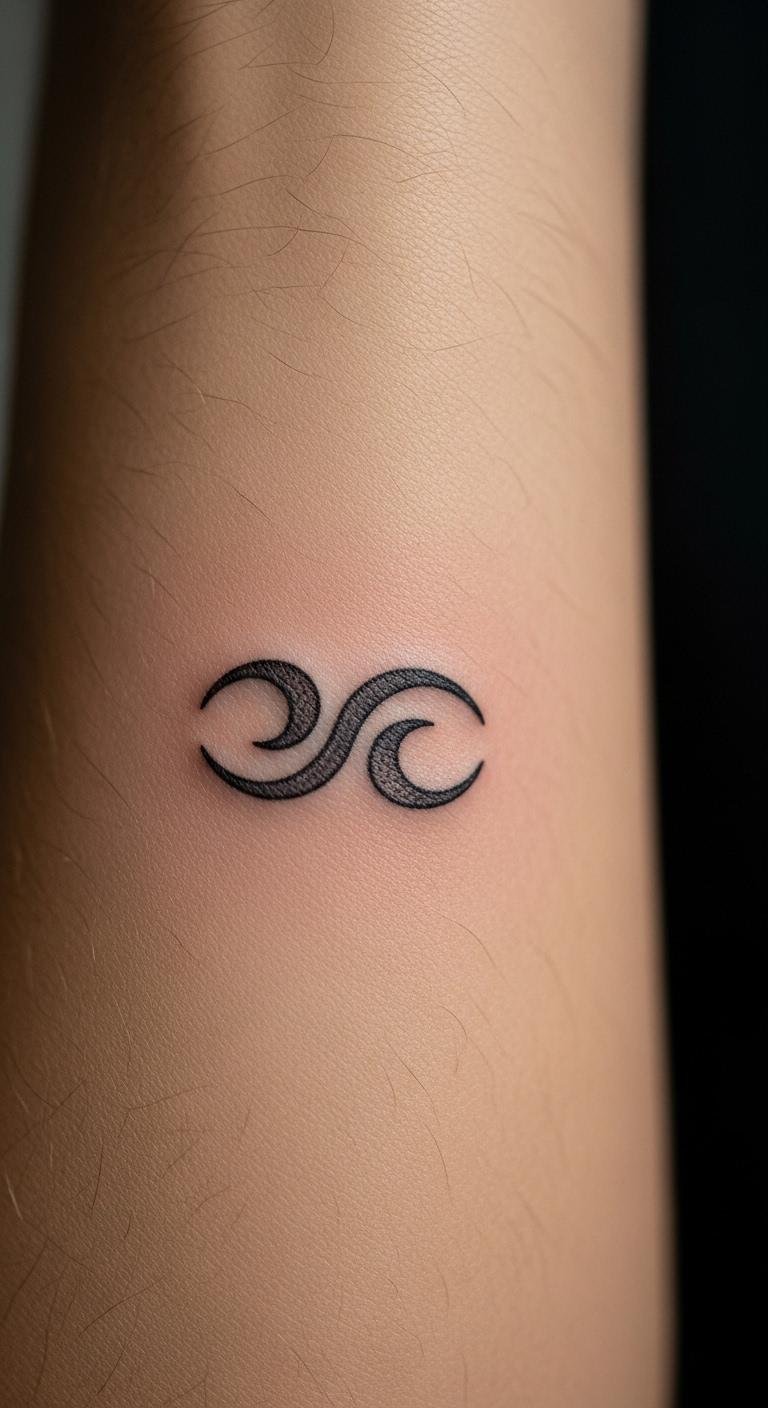Arm tattoos express Gemini’s adaptability. They show movement and balance. This design fits daily life. Put it on your inner arm. Budget tip: Shop around for flash tattoos. They can be $60. DIY example: Sketch waves or lines that mirror. Use a pen to outline. Practice on your arm with washable markers. Bring the final version in. Keep designs flowing. This tattoo represents change. It’s easy to cover if needed. Make it your own story.