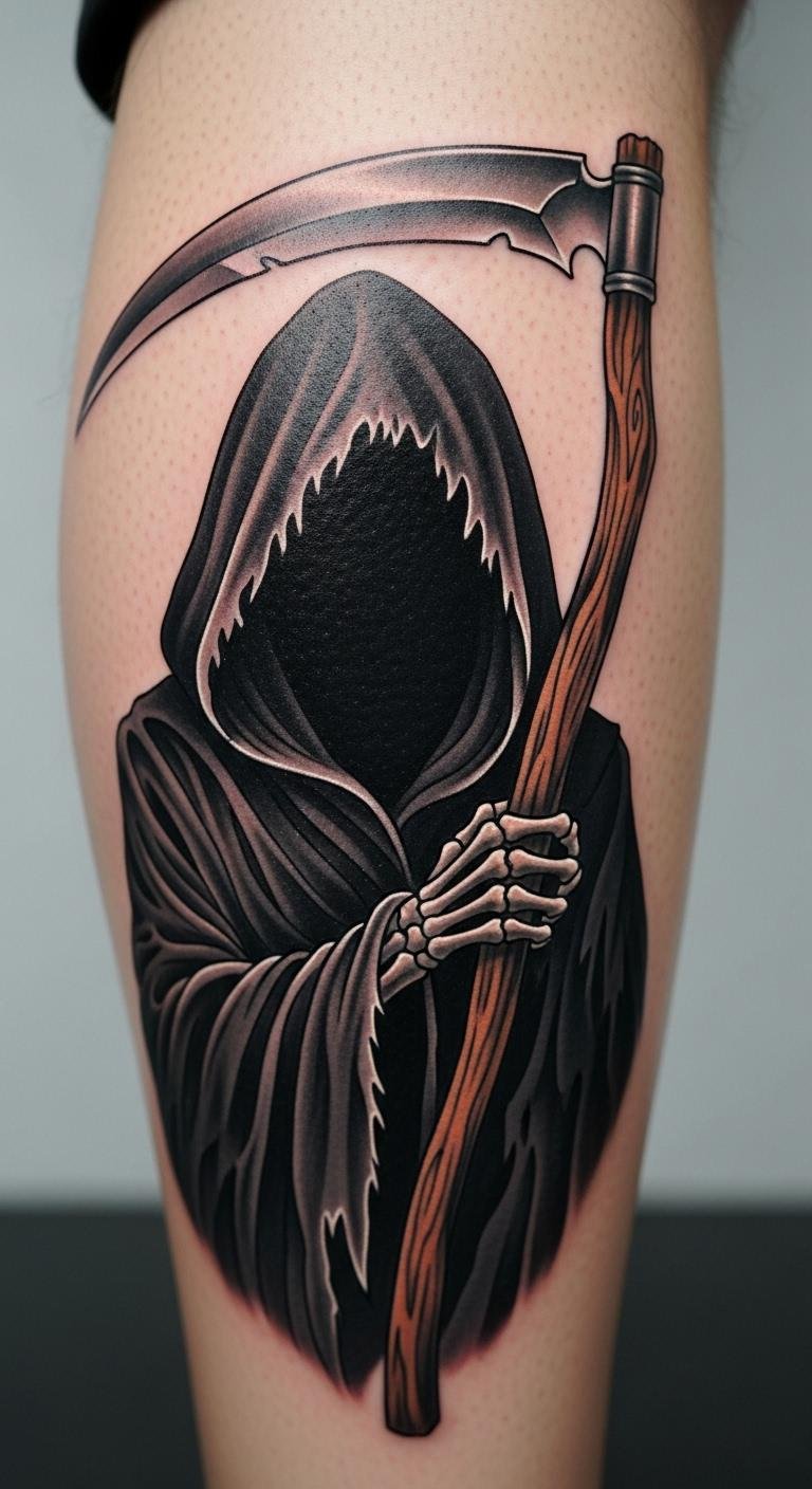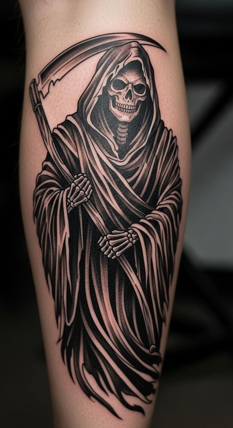 Classic Hooded Grim Reaper on the Calf