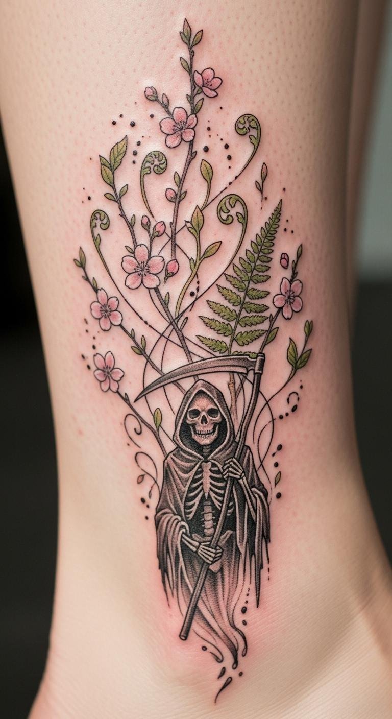 Rebirth-Themed Grim Reaper on the Ankle