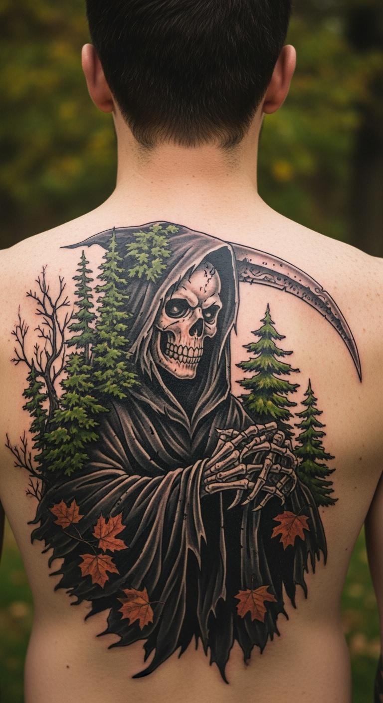 Nature-Infused Grim Reaper on the Back