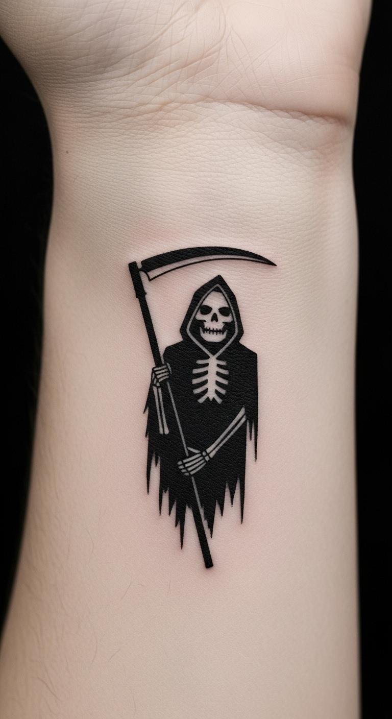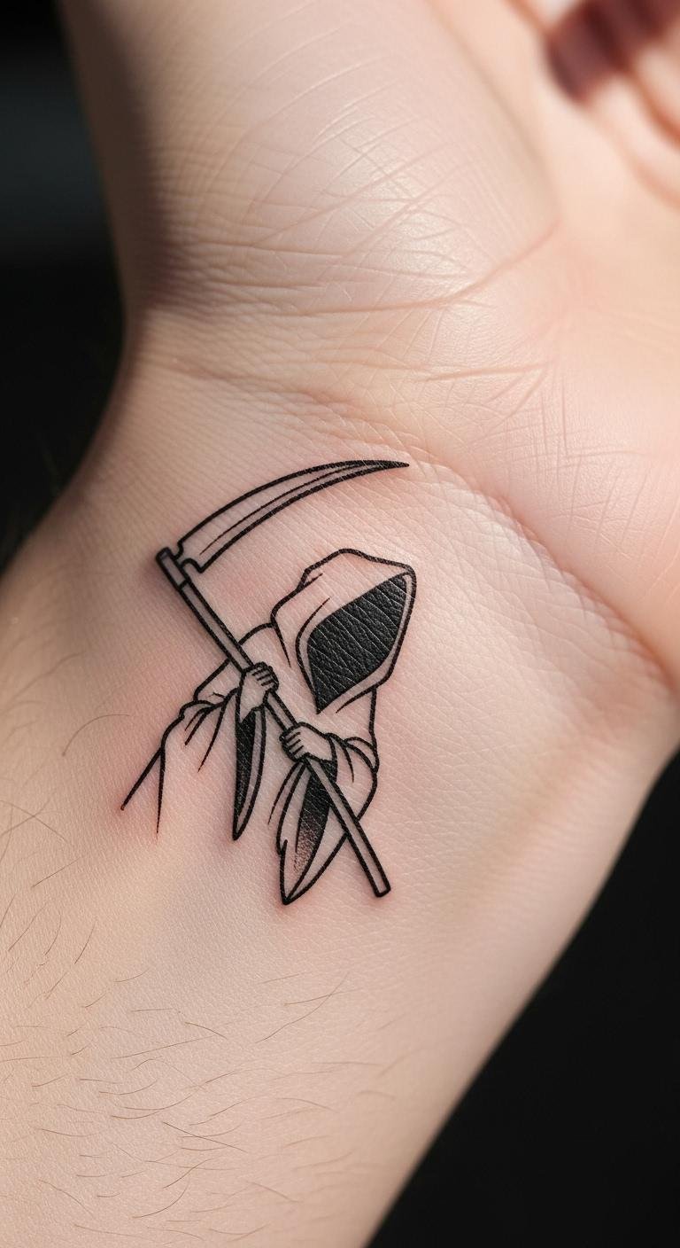 Minimalist Grim Reaper Outline on the Wrist