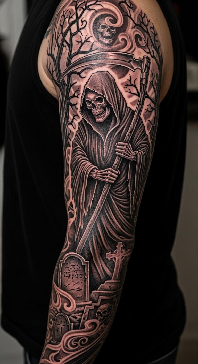 Black and Grey Grim Reaper Sleeve