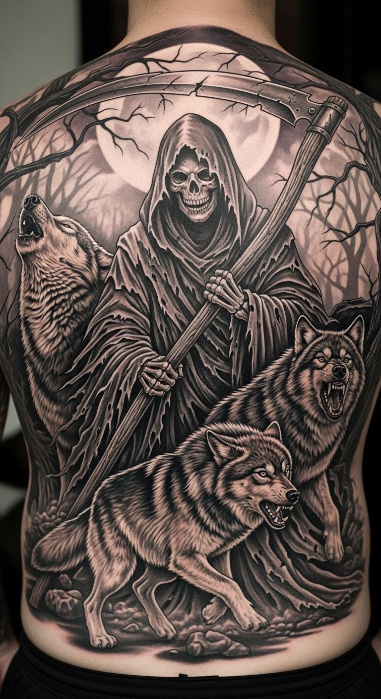 Grim Reaper with Wolves for a Fierce Vibe