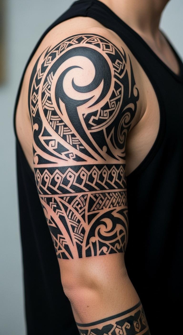 Tribal warrior designs bring ancient power to your arm. Think bold black lines forming shields and arrows. Start simple with a sketch on paper. Use online templates for inspiration, then tweak them yourself. Pick a local artist who specializes in this style to keep costs low. Go for black ink only to save on sessions. Bold patterns like these symbolize strength and protection. Break it down: one session for outlines, another for fills. Add personal touches, like a family symbol in the mix. This keeps it meaningful without extra expense. Try drawing your own version at home with markers. It’s a fun, affordable way to visualize. Remember, placement matters—shoulder to elbow works best. End up with something that tells your story. Go for it and see the transformation.