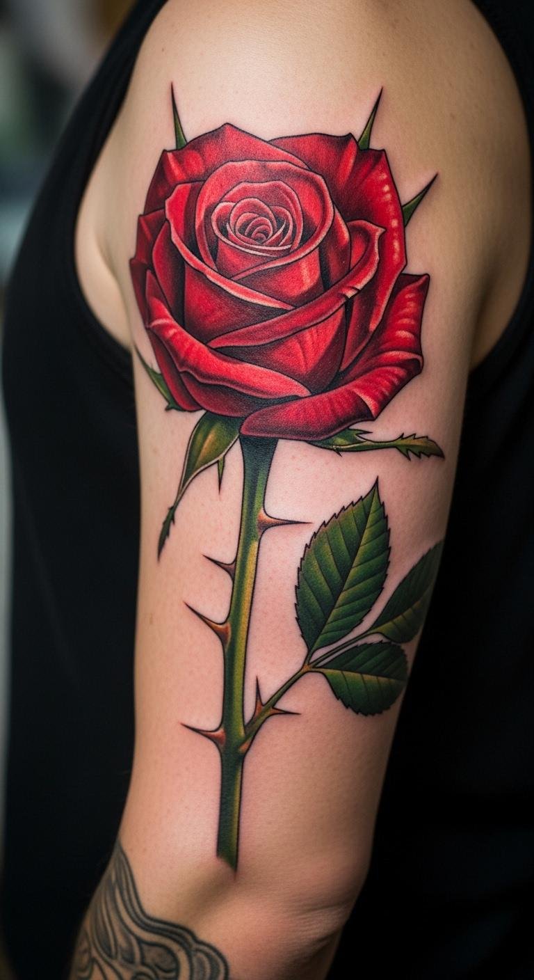 A rose with thorns mixes beauty and defense. Think blooming roses with sharp edges. Draw flowers easily. Find rose designs online. Choose an artist with options. Stick to outlines. This design adds edge. Throw in thorns for meaning. Expect three hours. Try coloring books at home. Position it mid-arm. It’s classic and affordable.