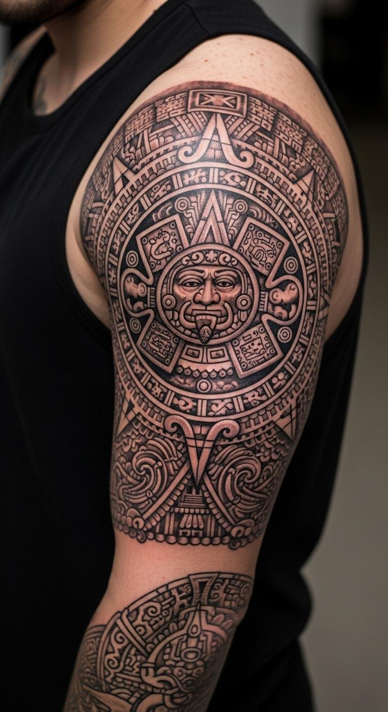 An Aztec calendar honors history. Envision circular symbols and figures. Draw calendars at home. Find Aztec images online. Pick a budget artist. Stick to black. This design tells tales. Personalize with elements. Aim for three sessions. Use prints for preview. Fit it mid-arm. It’s cultural and economical.