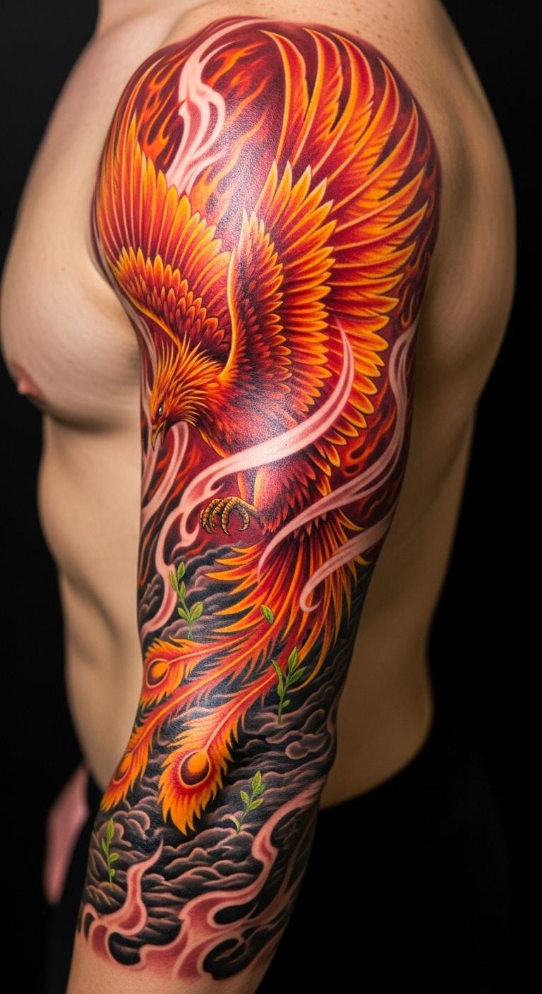 A phoenix rising symbolizes rebirth. Picture flames and wings. Sketch birds simply. Grab phoenix art online. Go to a local shop. Use minimal colors. This design renews hope. Add ashes below. Plan two sessions. Try drawing flames. Place it upper arm. It’s uplifting and affordable.