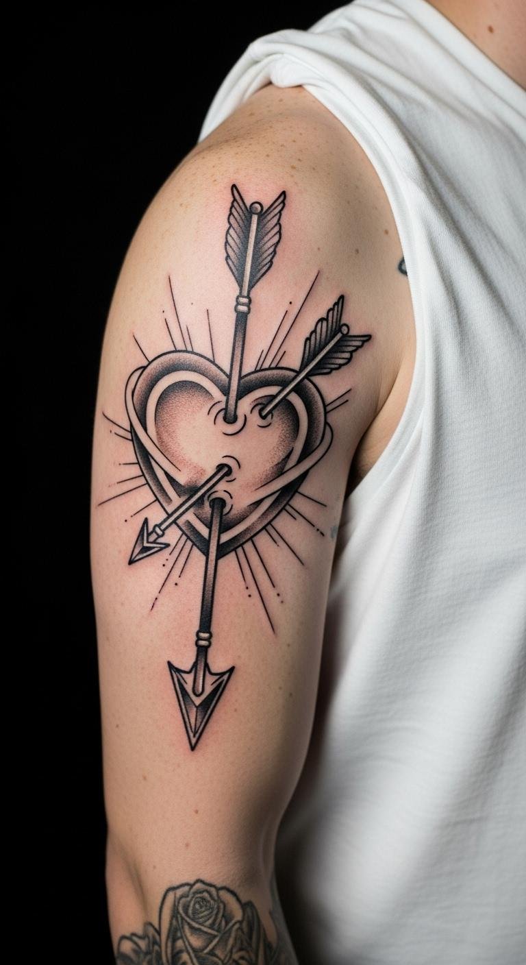 An arrow through heart design speaks of passion. Imagine an arrow piercing a beating heart. Jot ideas down quickly. Use free heart templates online. Visit an affordable shop nearby. Opt for minimal shading to cut costs. This motif tells an emotional tale. Include initials for personalization. Schedule two sessions. Practice with temporary designs at home. Place it lower arm for visibility. It’s a straightforward, bold pick.