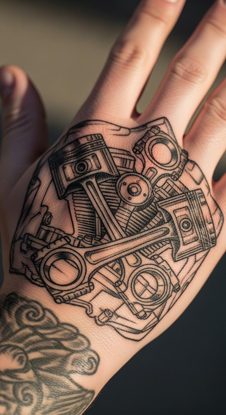 Engines show the heart of riding. Focus on pistons and parts. Draw them step by step at home. Download free refs online. Pick an affordable shop. Stick to black for realism. Wear it on your arm. Clean with mild products. Add your bike’s details. Practice with sketches. Feel the power every day.