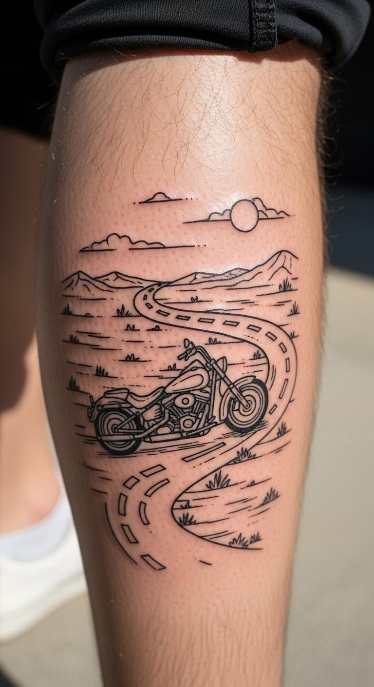 Scenes tell stories. Show roads and bikes. Plan scenes. Use free templates. Keep it quaint. Place on calf. Care simply. Personalize routes. Draw maps. Ride memories.