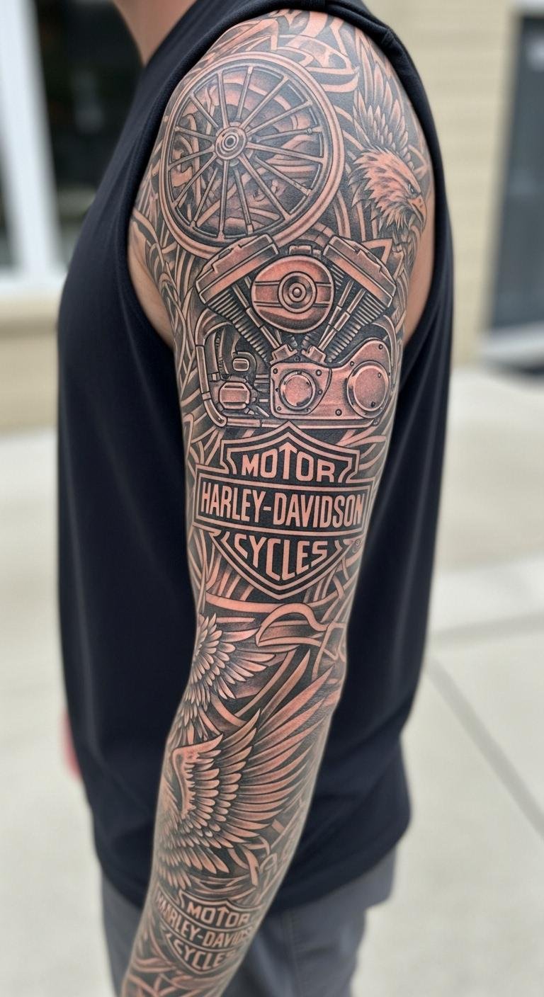 Sleeve Tattoo with Harley Motifs