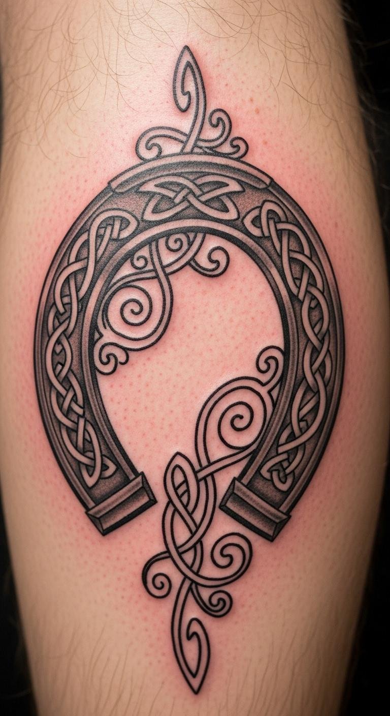Incorporate Celtic knots into your horseshoe for cultural roots and enduring luck. It weaves tradition into the design. Place it on your calf for subtle strength. Use free Celtic templates online. Find heritage events with artist offers. Focus on: Celtic horseshoe for legacy. Draw it with markers for a trial. Perfect for history buffs. Test the feel first. It’s about deep connections.