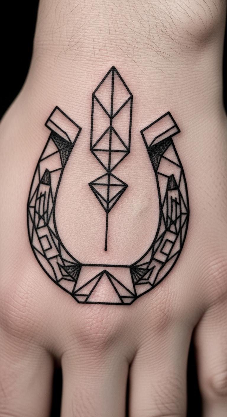 The downward horseshoe acts as a shield, turning away bad luck while keeping good vibes close. It points down, like pouring out worries. Put it on your ankle for a hidden touch. Draw it freehand on your skin with a marker to see how it looks. Find budget apps that let you overlay designs on photos. Save money by choosing smaller sizes at walk-in studios. Highlight this: downward style for strong defense. Mix in a quick home sketch with other symbols for a custom feel. This design suits those wanting quiet strength. Test with stick-on tattoos before committing. It’s a straightforward way to carry protection everywhere you go.