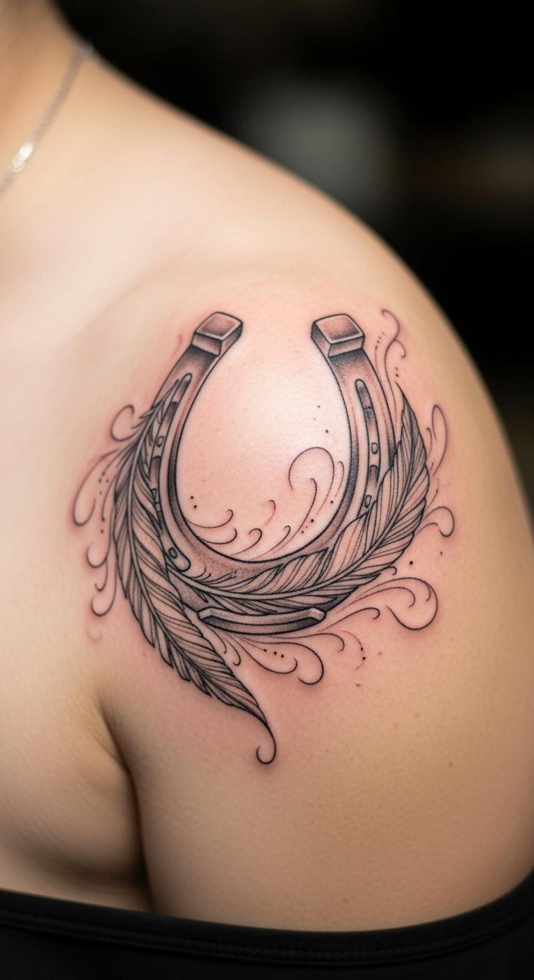 Combine a horseshoe with a horse for a boost of power and freedom in one design. The horse adds speed and spirit to the luck theme. Position it on your shoulder for easy show-off. Use affordable drawing apps to blend the elements yourself. Opt for local fairs where artists offer deals. Focus on: horse combo for extra energy. Create a DIY version by tracing outlines on paper and adding colors with markers. This idea fits adventure seekers perfectly. Start small with a practice drawing to get the flow right. It’s all about making your ink reflect your inner drive without breaking the bank.