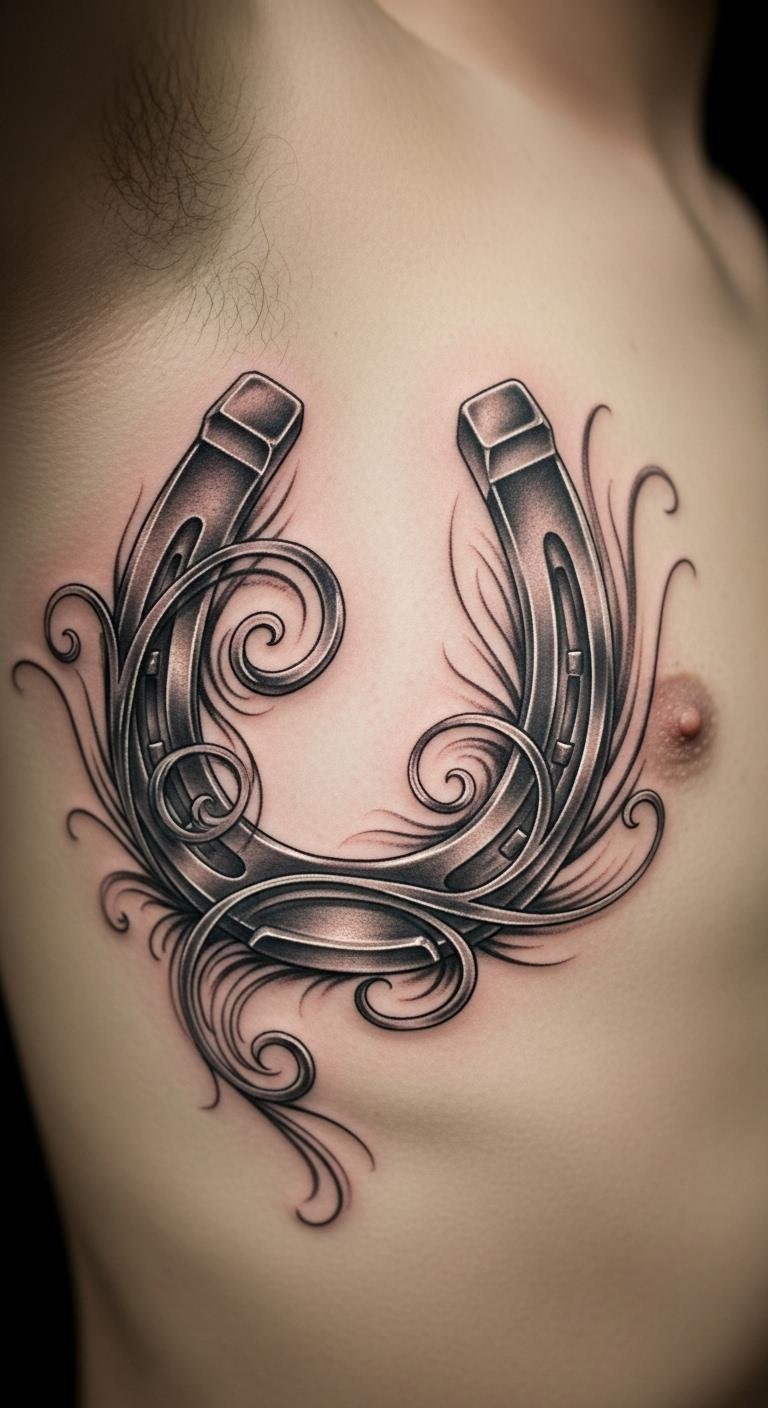 Incorporate swirls into your horseshoe for grace and beauty in motion. It adds a dance-like quality to the luck. Hide it on your ribs for a personal secret. Draw inspirations from free art sites. Bargain with artists for better deals. Focus on: swirl horseshoe for elegance. Make a DIY template with markers and paper. Perfect for creative types, this design flows naturally. Try it on with temporaries first. It’s about simple beauty in your life.