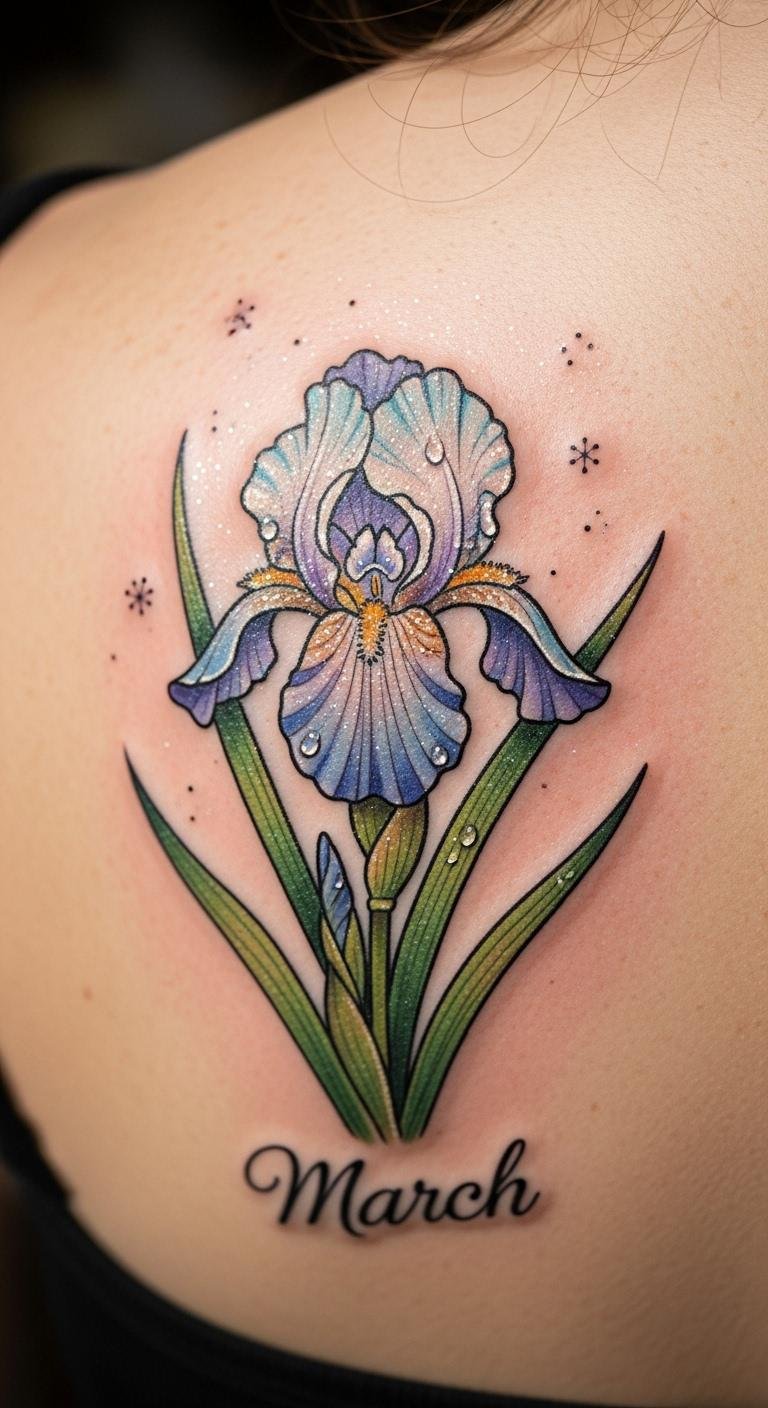 Mark March with a birth month iris tattoo. Use colors that nod to spring. Score it for $40. Draw seasonal themes at home. Celebrate your birth. This ink honors dates. Budget with core designs. Plan around events. This option marks time. Simple sketches prepare you. Feel connected.