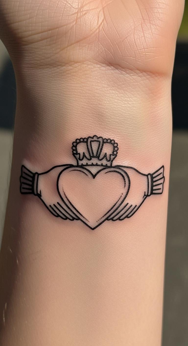 A Claddagh heart on your wrist stands for love and friendship in a subtle way. Picture a small heart with hands and a crown, easy to hide or show. Draw it on paper using basic shapes from free apps to test ideas. Find an affordable artist through local shops; sessions might cost $50–$150. Opt for a minimalist style to save time and money. Add a twist, like shading for depth, but keep it simple. Plan ahead by marking the spot with a temporary marker at home. This helps you see how it pairs with jewelry. Choose a spot that doesn’t rub against clothes for quicker healing. Use online galleries for inspiration without paying for custom art. Make it your own by incorporating a birthstone color if you go colorful, but stick to black for budget reasons.