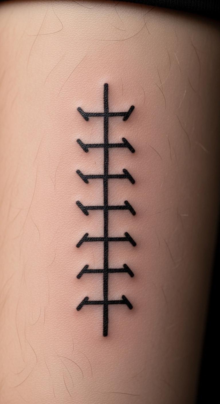 An Ogham script band on your inner arm honors ancient writing. Straight lines tell a tale. Write it out with a ruler on paper. Free Ogham guides online help you choose. Cost around $80–160. Keep it straight for ease. Personalize with your name. Step one: draw the lines simply. Inner arm heals with care. Find ideas in history books. This keeps it meaningful and cheap.