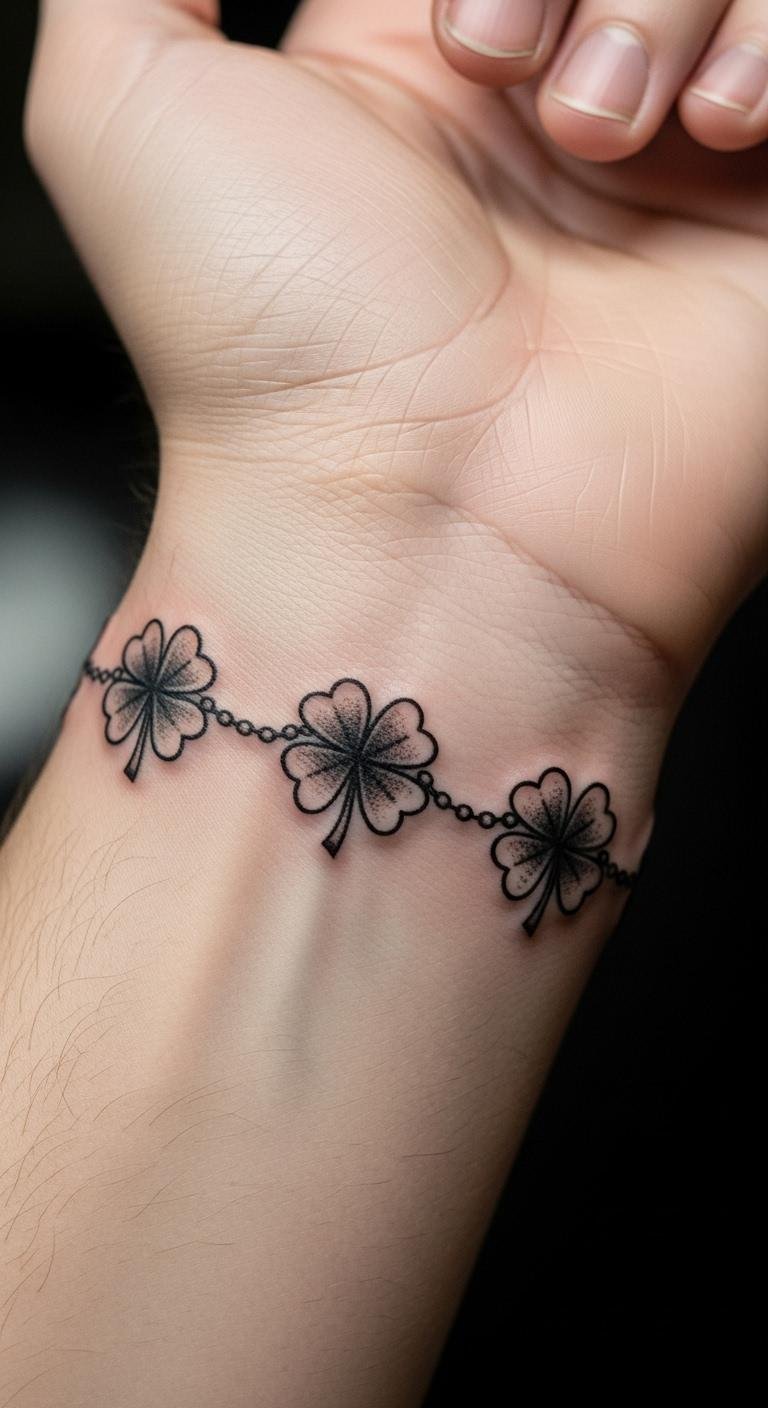 A shamrock chain on your wrist creates a linked luck story. Repeating shapes flow. Chain it together on paper. Online chain patterns are free. Cost $80–160. Use repeating elements. Customize the links. Draw a sample: trace it. Wrists are everyday spots. Use apps for inspiration. Affordable and neat.