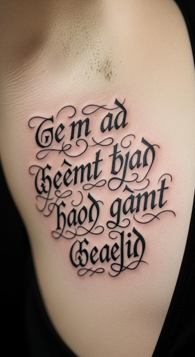 A Gaelic script quote on your ribs offers a personal, hidden message. Choose words that reflect your story. Write it out on paper first to get the flow right. Free translation tools help you pick phrases. Expect $120–250 from a local pro. Opt for thin lines to keep it light. Add symbols around it for extra flair. Step by step: practice the script with a pen. Ribs heal faster if you avoid tight clothes. Use apps to preview fonts on your body. Make it affordable by keeping it short.