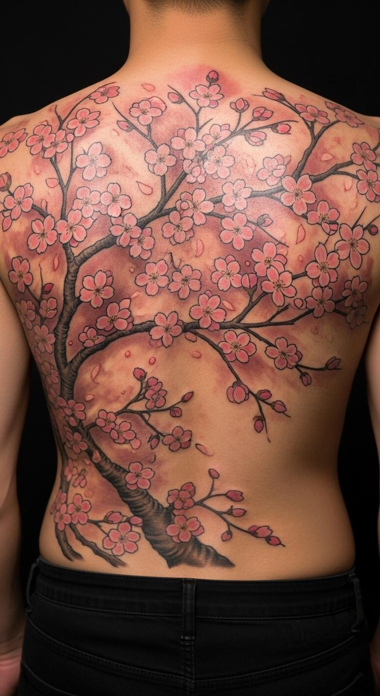 See cherry blossoms scattering across your back, petals falling like memories. They stand for beauty’s brief moment. Sketch branches using free drawing tools. Add a few flowers to keep it simple. Go for outline styles to cut costs. Practice on paper with colored pencils. Position them to follow your back’s curve. Try washable markers for a preview. Discuss budget options with your tattooist. Break the tattoo into phases if needed. Use apps to visualize on your skin. Make it your own by adding a personal symbol. This design reminds you of change. Start small and expand later. It’s straightforward and meaningful.