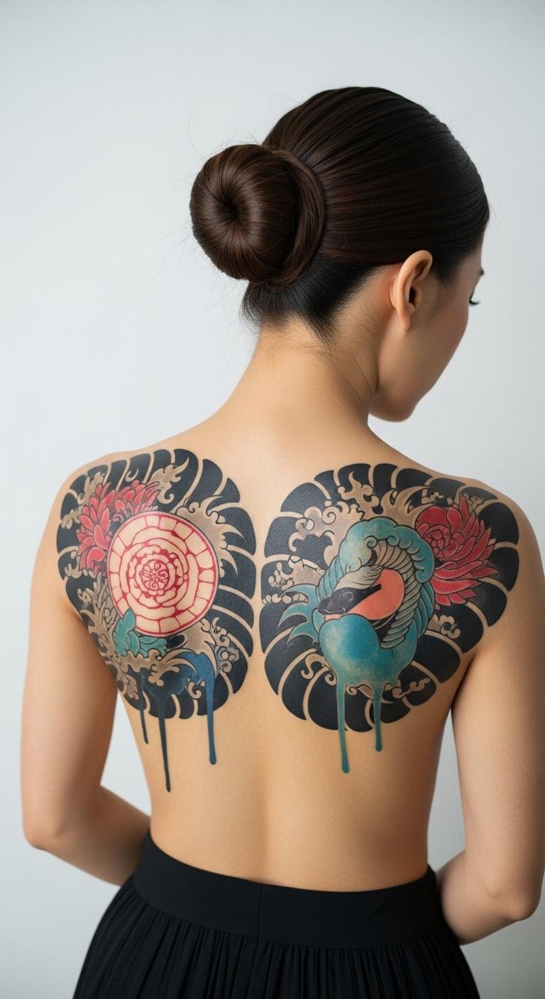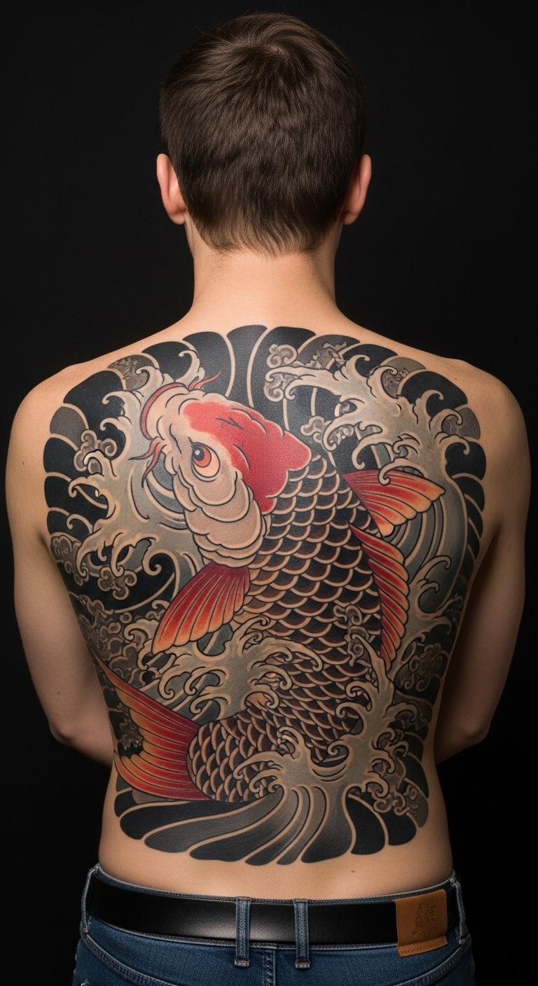 Imagine a koi fish journeying up your back, waves rippling around it. This motif means perseverance and growth. Draw it yourself with basic art supplies from a dollar store. Add water elements for depth. Opt for a single-color version to save money. Find free tutorials online to refine your idea. Place it along your spine for natural flow. Test with henna or stick-on tattoos first. Chat with an artist about affordable tweaks. Keep sessions short to manage time. Use phone apps to see how it fits your back. Make it personal, like linking it to a challenge you’ve overcome. This design inspires every day. Start with a small sketch on paper. Adjust details at home before committing. It’s an easy way to build confidence.