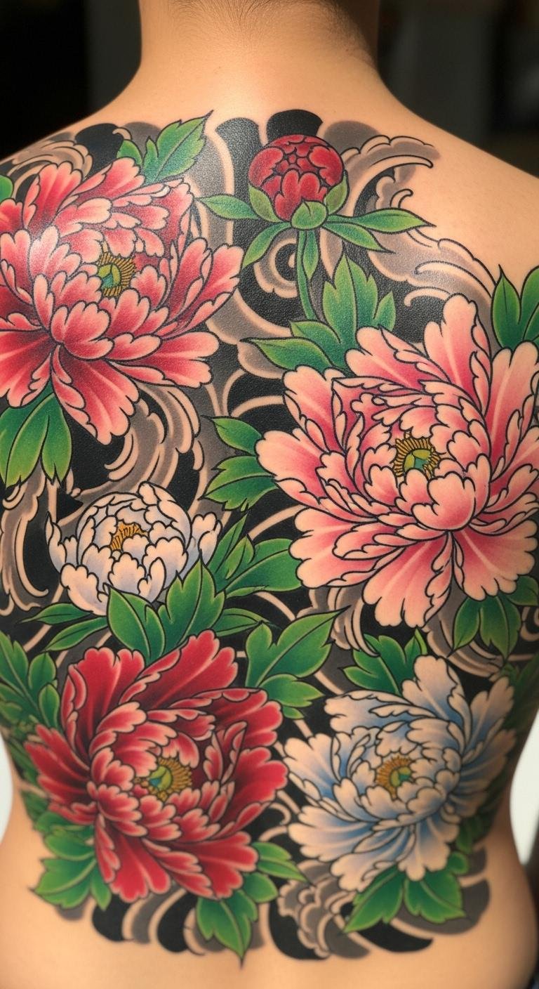 Peonies across your back mean wealth and love’s grace. Sketch petals with everyday supplies. Add leaves for a full look. Stick to outlines for savings. Find inspiration in free online images. Arrange them to suit your back. Test with body paint first. Ask artists for economical tips. Divide into sessions as needed. Phone tools let you preview easily. Personalize with colors you like. This design brings positivity. Start drawing at your desk. Make it simple yet striking.
