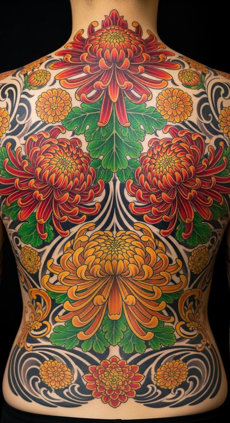 Chrysanthemums on your back represent long life and strength. Draw a basic cluster on paper. Include stems for flow. Opt for minimal shading to save. Use free guides for practice. Fit them to your back’s shape. Try stickers for a trial run. Speak with pros about budget fits. Plan for multiple visits. Apps make visualization fun. Add a twist that reflects you. This tattoo symbolizes endurance. Begin with a quick outline. Keep it practical and inspiring.