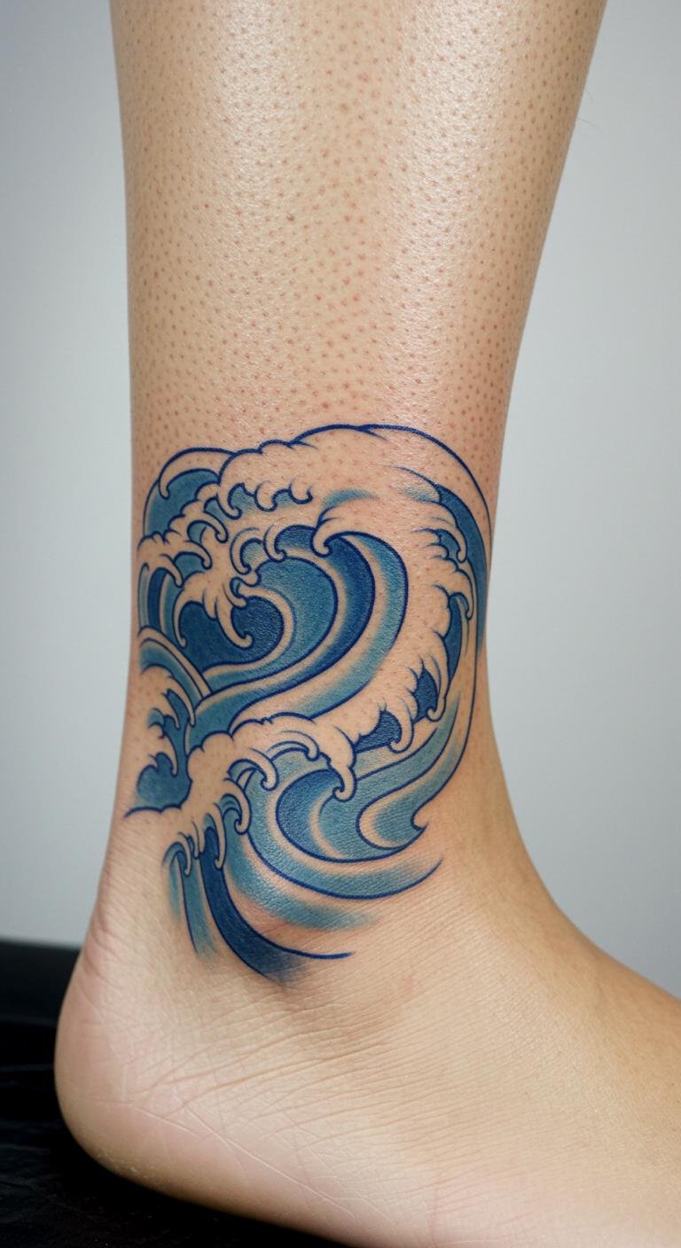 A wave on the ankle is discreet and stylish, perfect for showing off in shoes. Think of a small swirl that follows your foot’s shape. This spot is less painful and quick. To save, look for walk-in specials at shops. Use ankle bands to preview the design. A tip: draw it with a marker first. Bold the advice: preview with bands. It makes the choice easy and affordable.