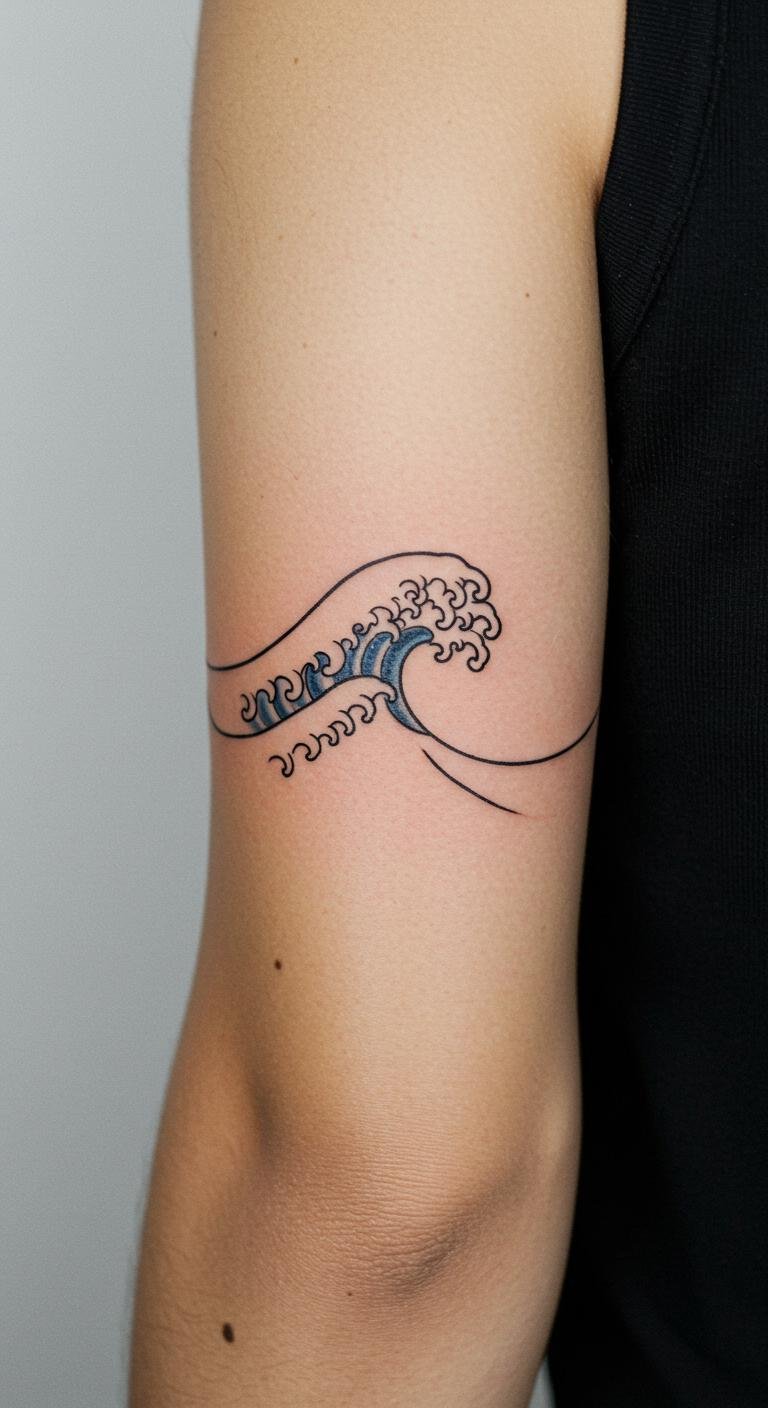 A simple wave is ideal for beginners, using just a few lines on your arm. It’s straightforward and quick to get. Check for beginner discounts at studios. Practice with free drawing tools at home. A tip: keep it small for fast healing. Bold this: practice drawing. It simplifies the whole experience.