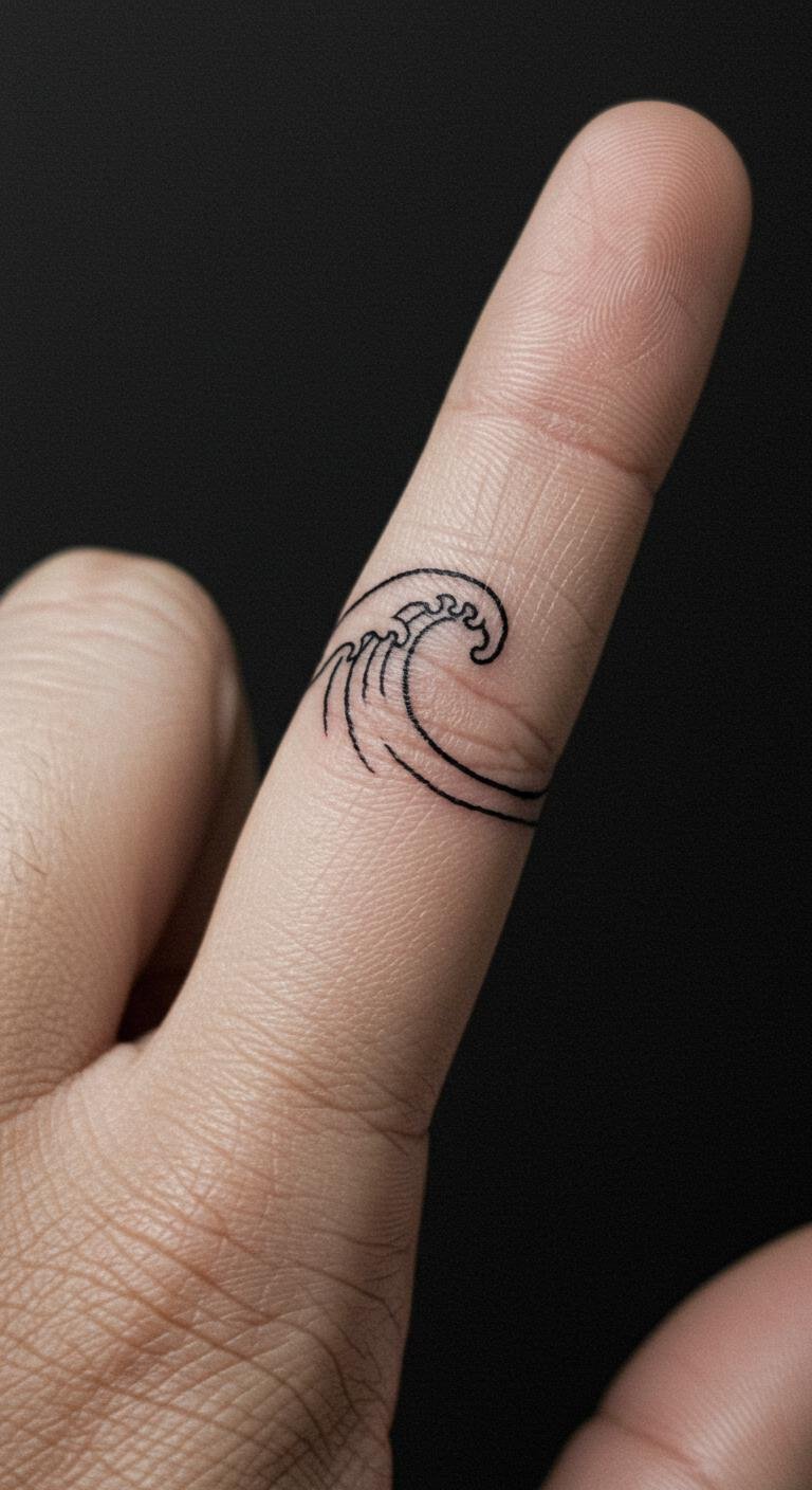 Tiny Wave Finger Tattoo