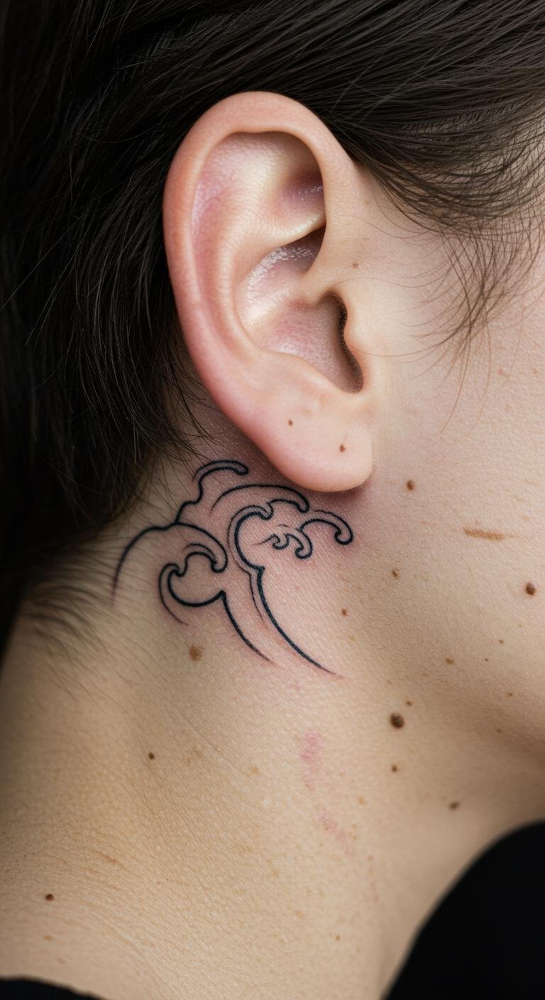 A small wave behind the ear offers a subtle, everyday charm. It’s like a secret wave tucked away, visible only when you want. This spot is great for first-timers. To keep costs low, check for flash deals at tattoo shops—some offer small designs for under $50. Test it with a temporary sticker from a dollar store first. A tip: measure the area with a mirror to ensure it fits. Use online tutorials to sketch your own version. Bold the point: test with stickers. This makes getting inked simple and affordable, adding a touch of style without fuss.
