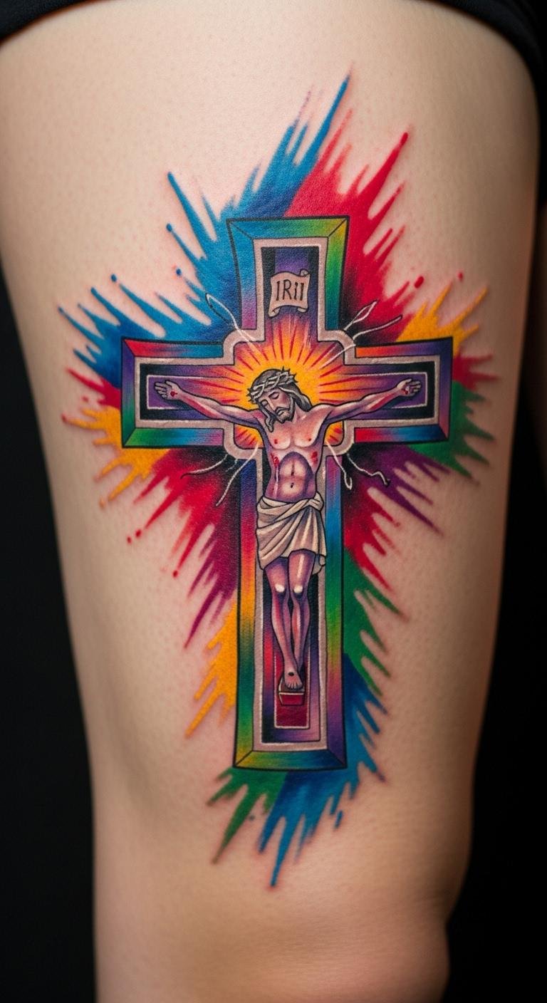 Decide between bright colors or plain ink. Put it on your thigh for options. Costs vary, say $70 for plain. Mix colors with markers for trials. Choose based on your space. It’s straightforward and cheap. Key: colorful cross. Test shades on fabric. Look for versatile artists. Pick what fits you.