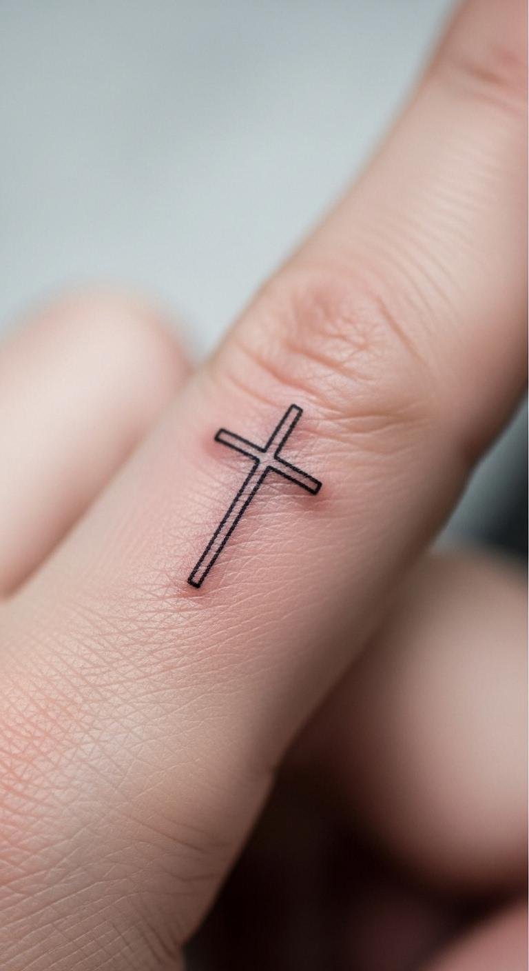 Clean lines keep it elegant. Go for your finger for discretion. Around $50. Draw lines with a pen. Do it fast. Save money. Bold: minimalist cross. Use tape for outlines. Find quick sessions. It says a lot with less.