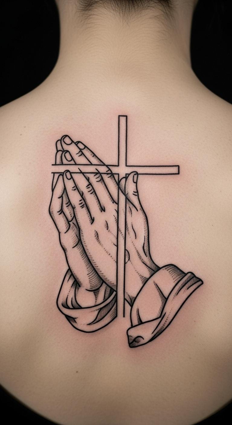 Hands holding a cross show pure devotion. Pick your back for a larger piece. Costs about $95 for details. Use your hands to trace ideas. Draw it out quickly. Keep it affordable. Bold: folded hands cross. Use phone apps for previews. Look into group sessions. It evokes quiet hope.