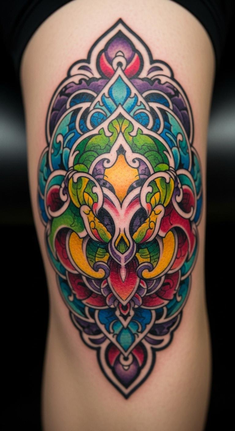 Symmetrical tattoos on the knee offer balance. Shapes align perfectly. Design with tools. Practice at home. Use even lines. Place centrally. Find precise artists. Make it yours. Heal with ease. Enhance daily wear.