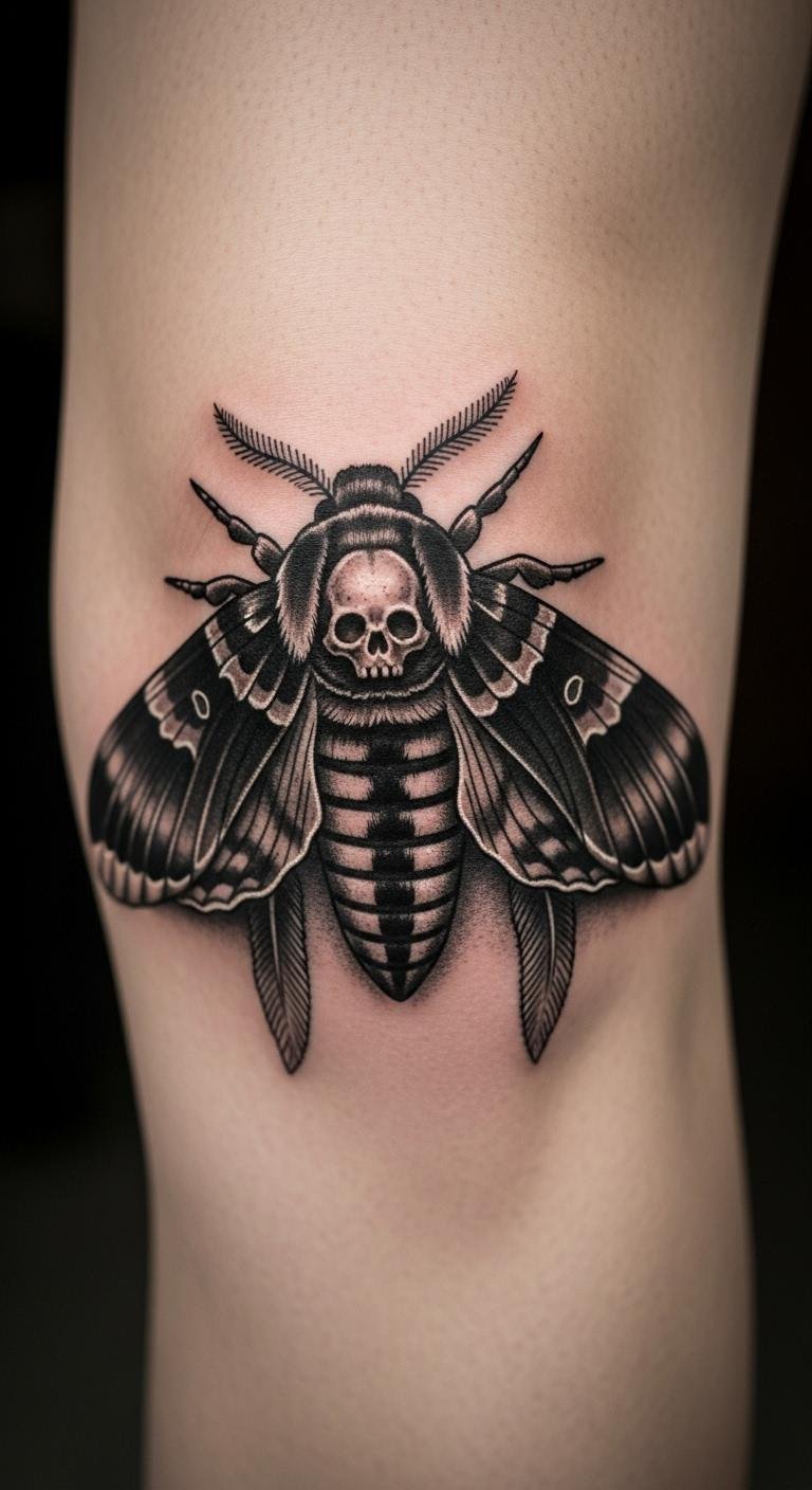 A death moth on the knee represents transformation. It’s a subtle yet powerful choice. Sketch it based on images online. Practice with affordable stencils. Opt for outline details. Place it to follow the knee. Find artists good with motifs. Add your twist. Heal with simple routines. Wear it as a personal reminder.