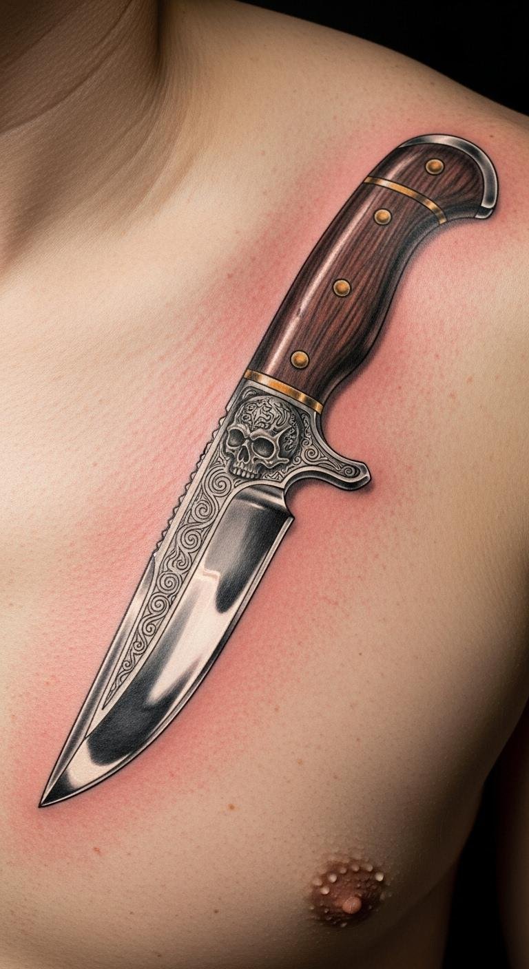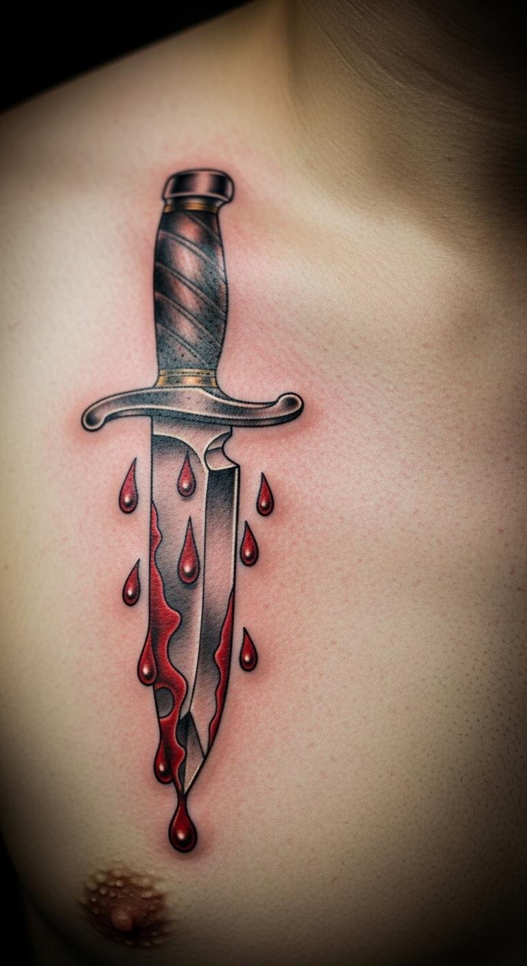 Knife Tattoo on Chest