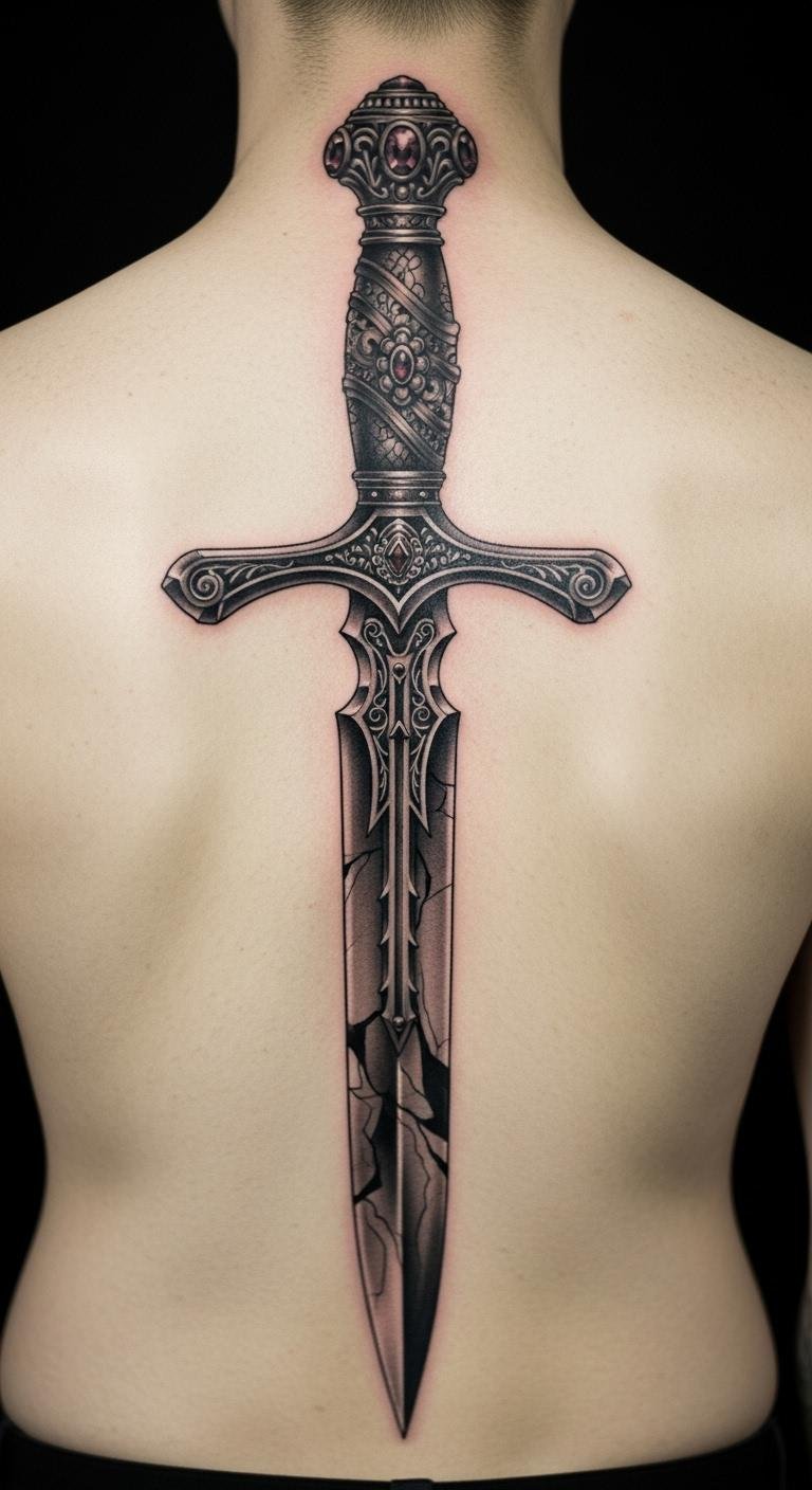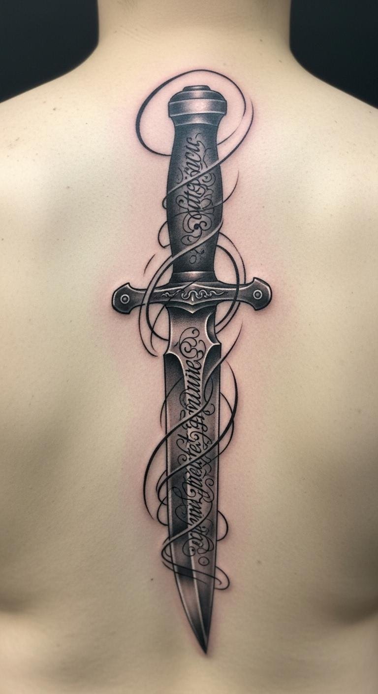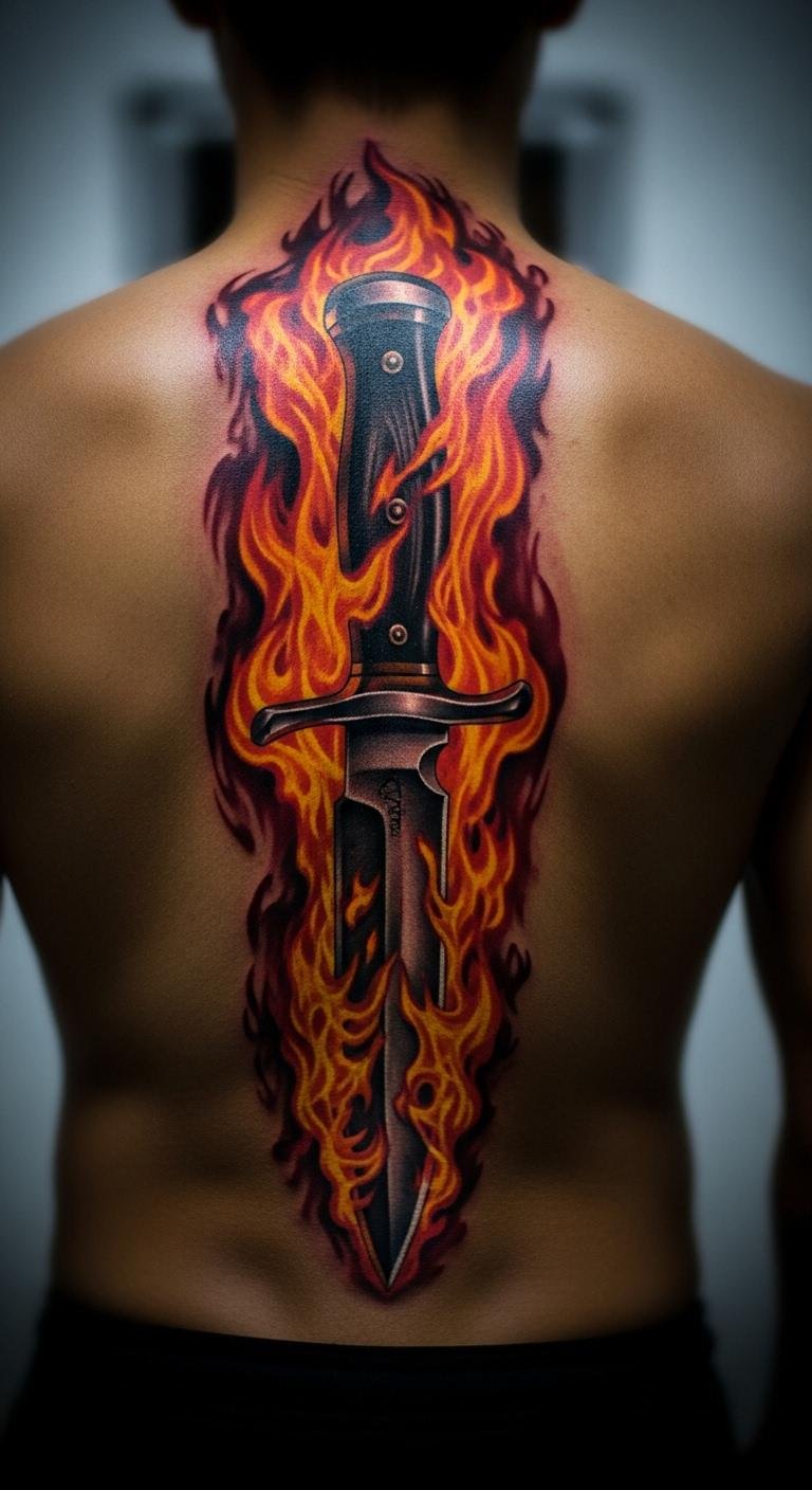 Knife Tattoo on Back