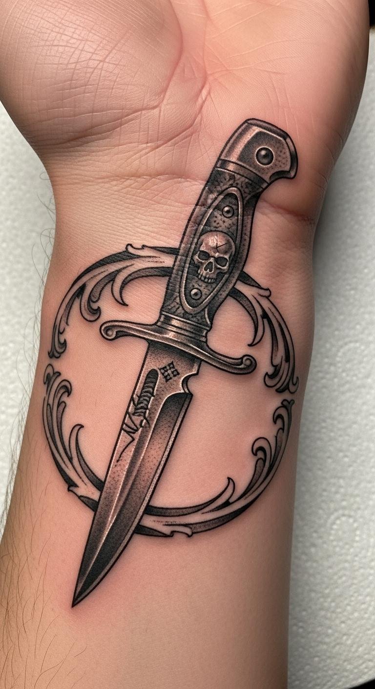 Knife Tattoo on Wrist