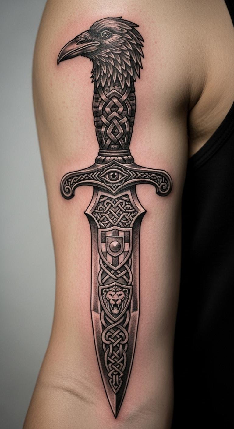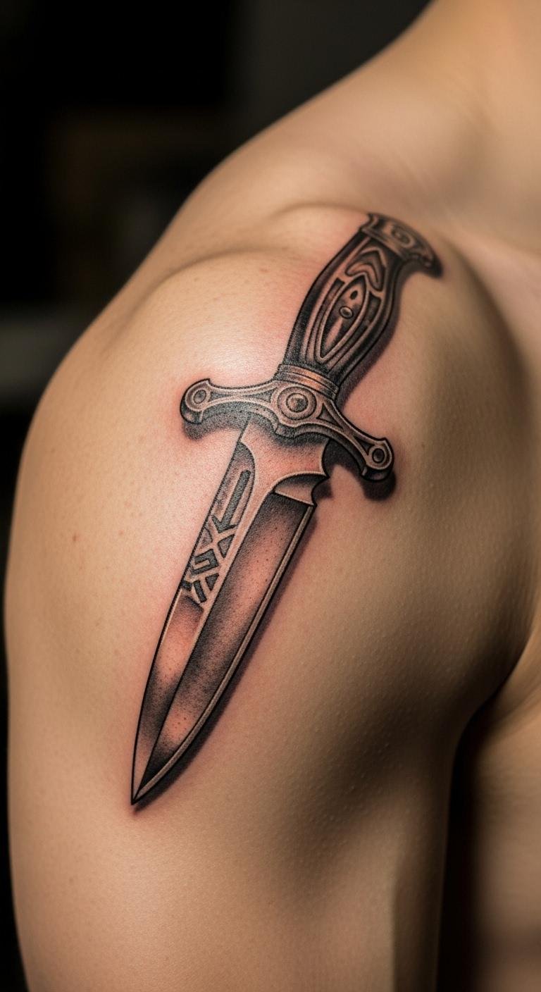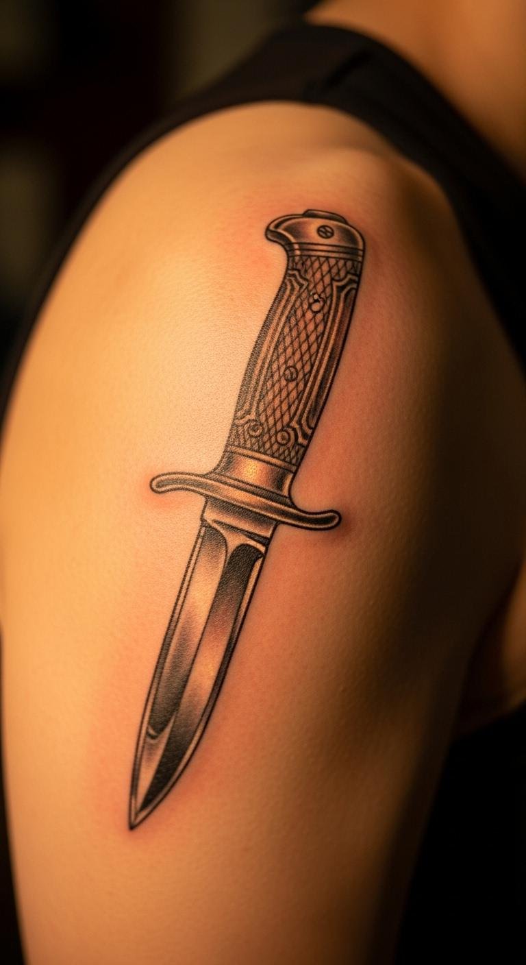 Knife Tattoo on Shoulder