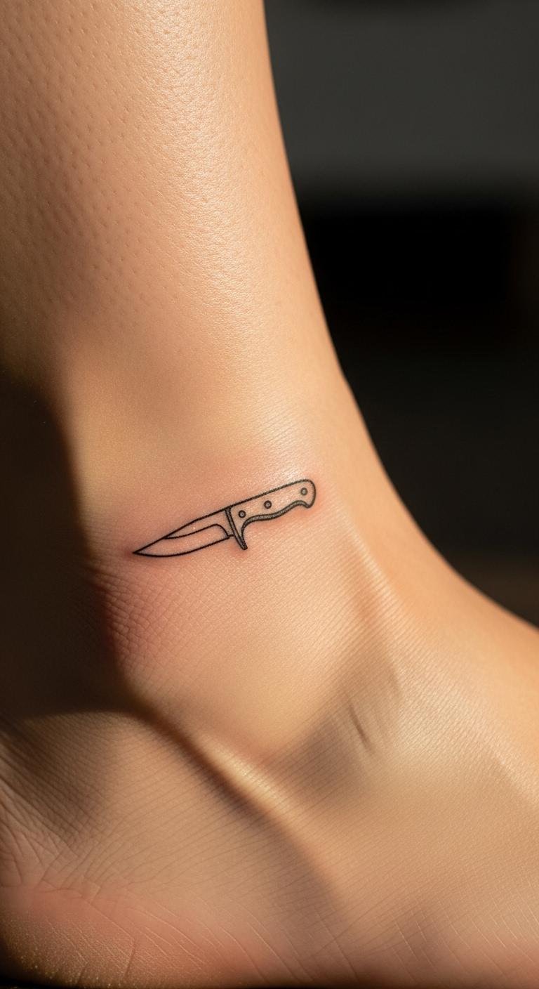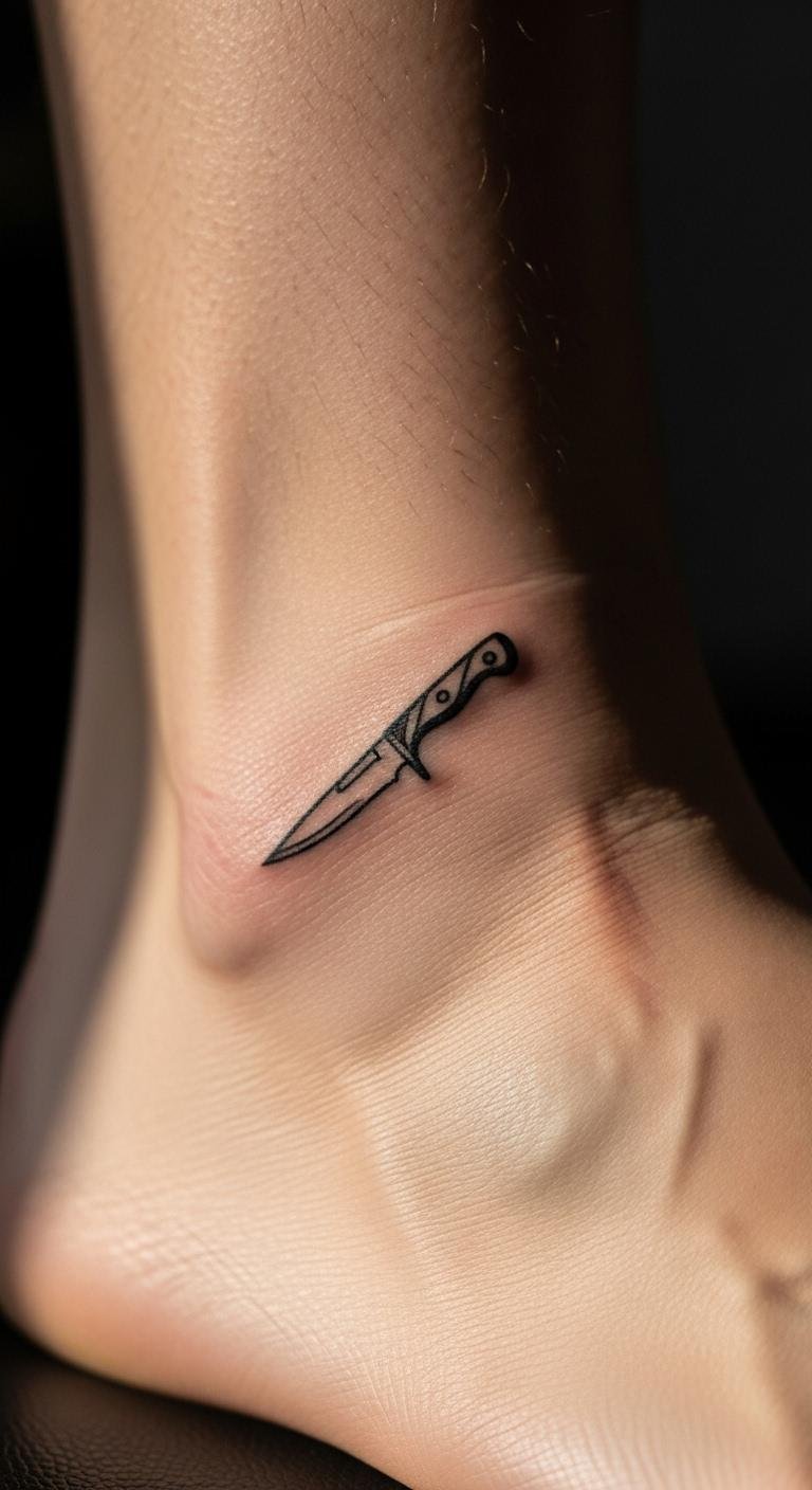 Subtle Knife Tattoo on Ankle