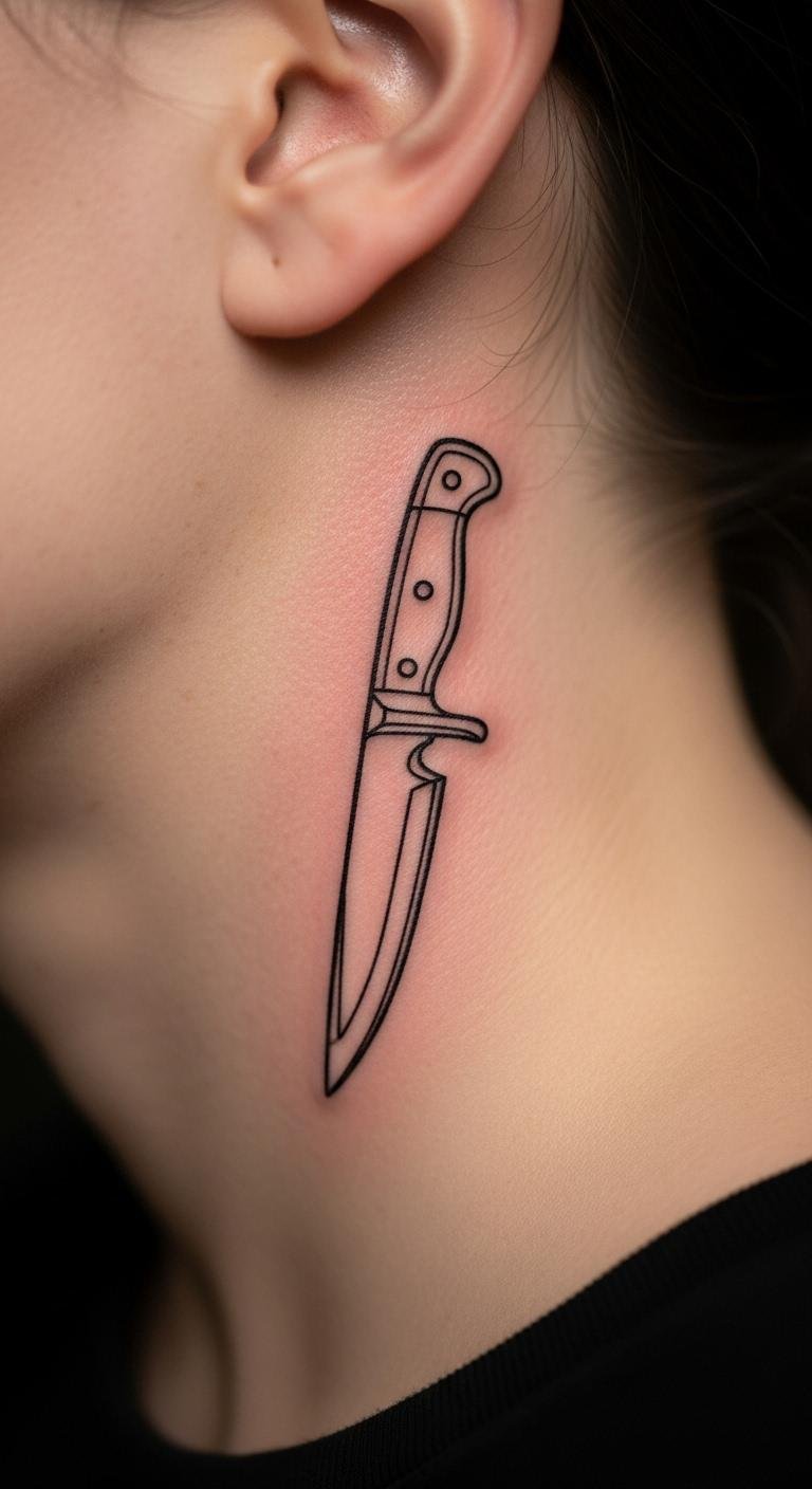 Stick to outlines for ease. A sleek knife outline tattoo fits anywhere like your neck. Look for fast services. Plan with simple tools. Clean and sharp. Session $60. Easy maintenance. Test outlines.