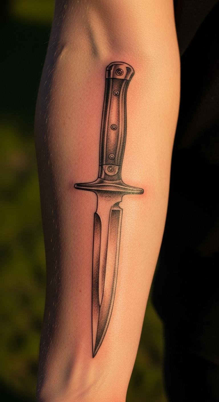 Knife Tattoo on Forearm