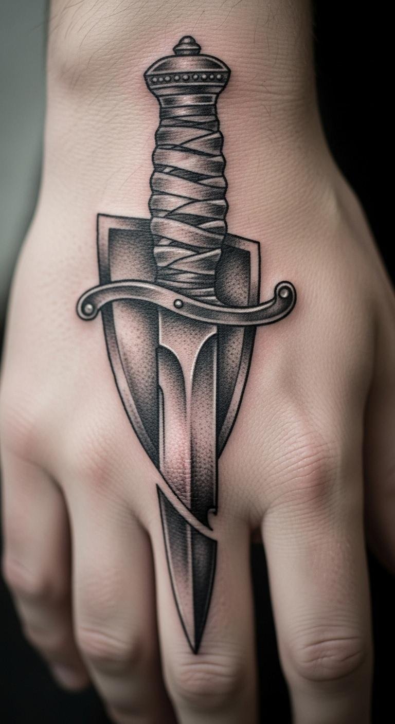 Position it for strength. A knife tattoo on your shoulder blends with your build. Search for discounts. Draw at home. Adds presence. Session $110. Standard care. Preview with tape.